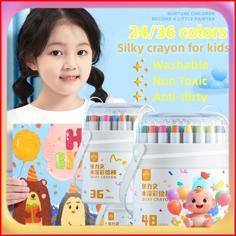 Free Brush Babyfun 24 36 48 Pcs Crayon For Kids- Washable Non Toxic Colouring Painting Oil Pastel Drawing Art Krayon Tid