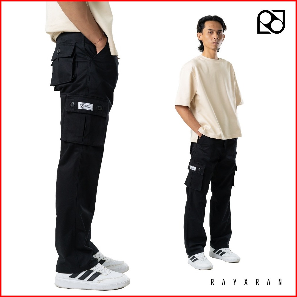 Rayxran Loose Cargo Pants Black Reguler Cut