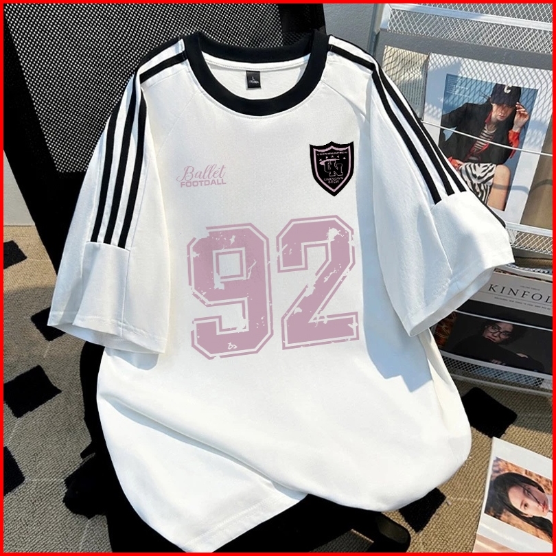 Sezo Baju Wanita Putih Black Kaos Premium Lengan Pendek Oversize Cetakan Digital Abu-abu Muda Nomor Jersey 72 Atasan Pas