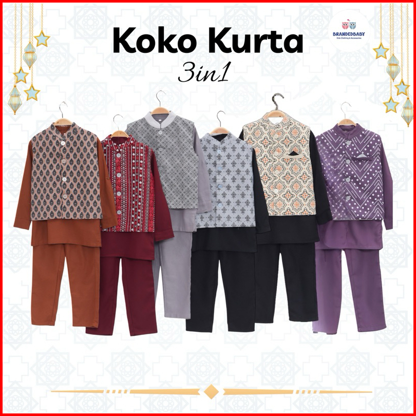 Brandedbaby 3t-13t Setelan Koko Kurta Anak Laki-laki Setelan Koko Muslim Pakistan Motif Terbaru