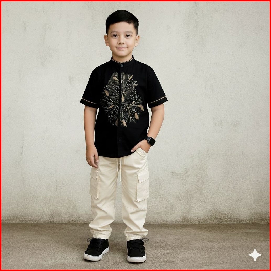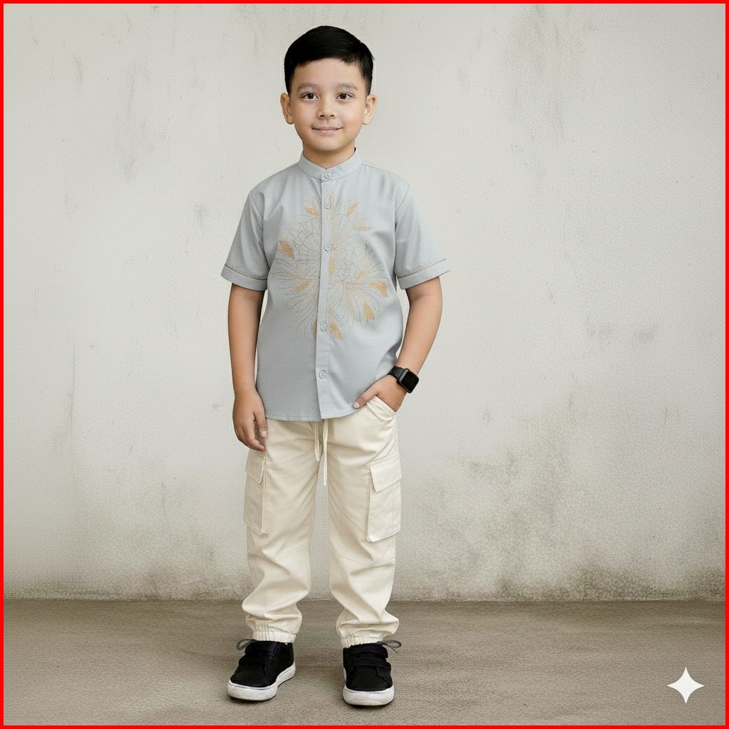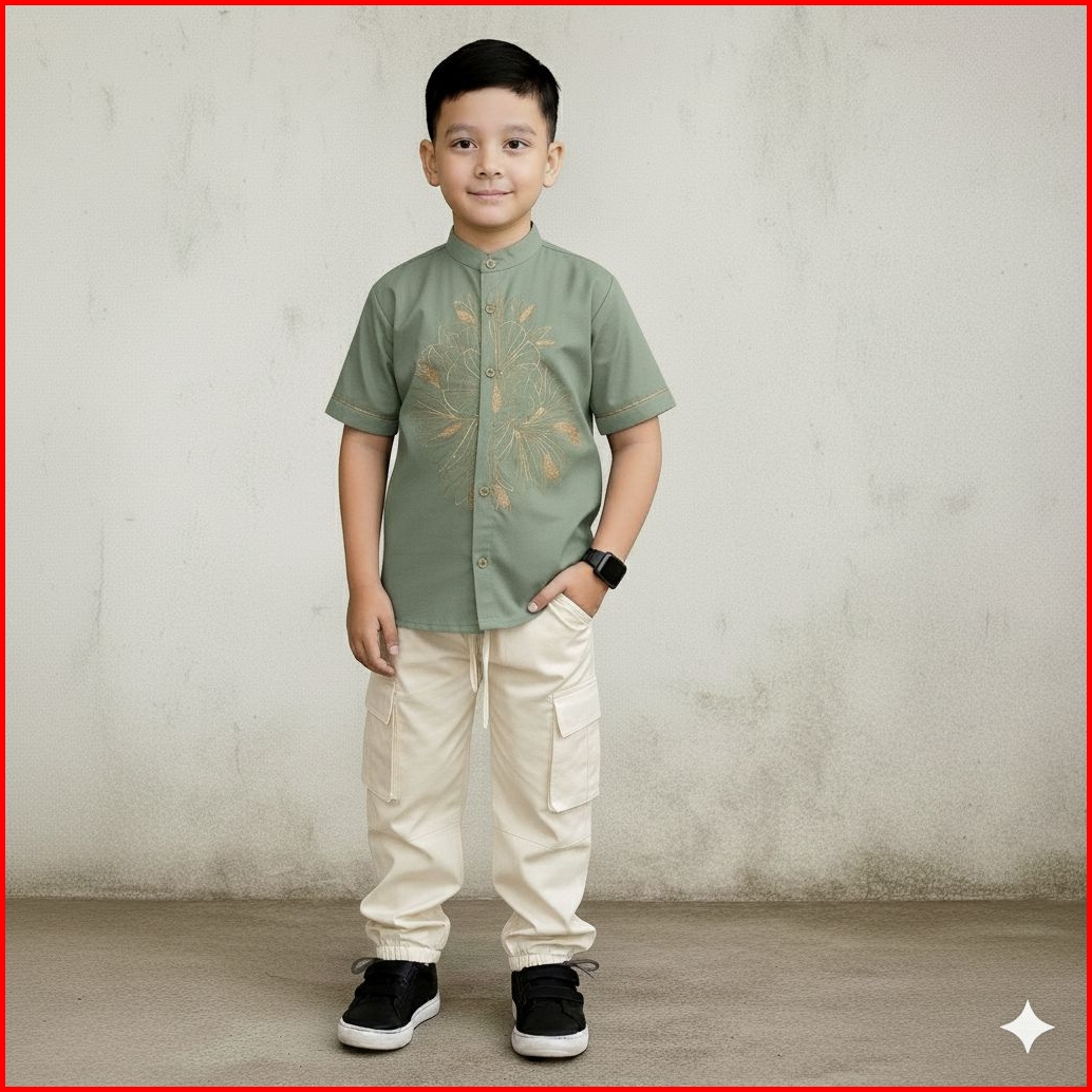 Set Celana Dan Baju Koko Anak 4-13 Tahun Bordir Tengah Saku Samping-baju Koko Viral Elegan Dan Berkualitas