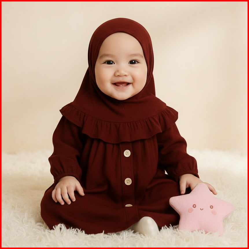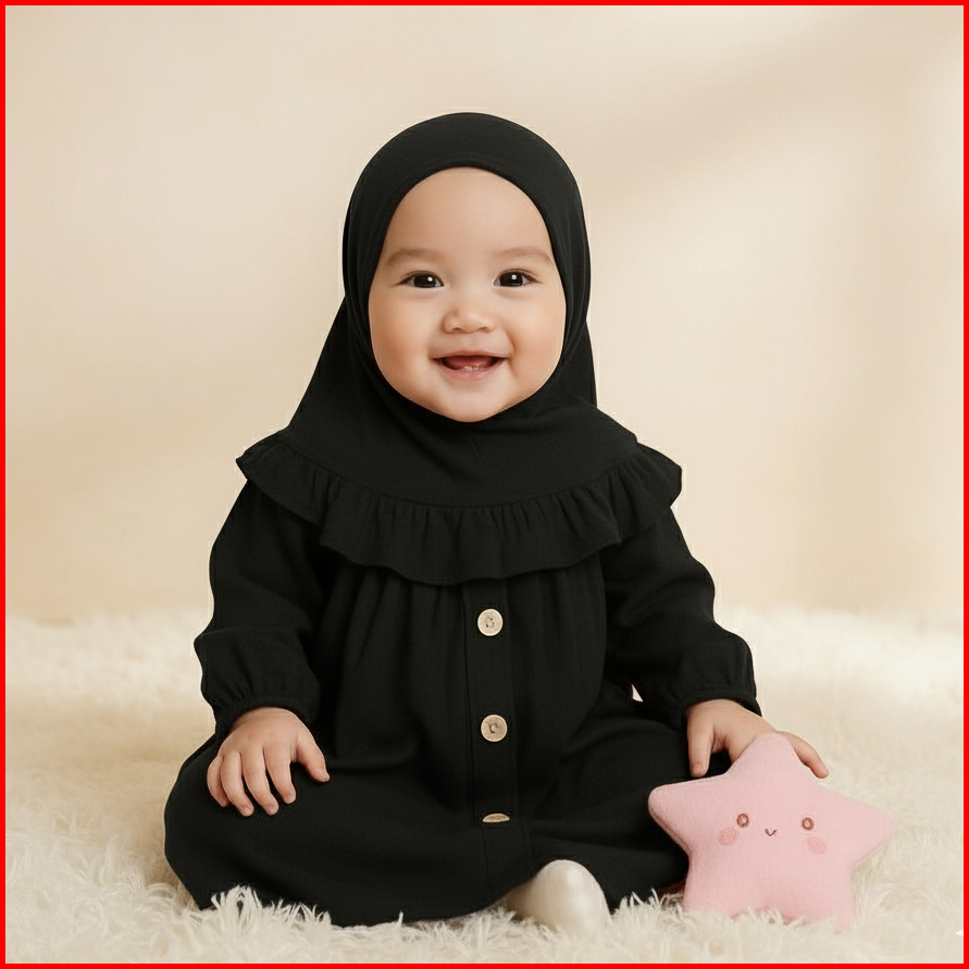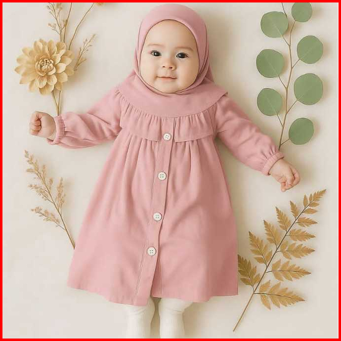 Newborn Gamis Anak Bayi Perempuan Kancing 0-18 Bulan Set Jilbab Abaya