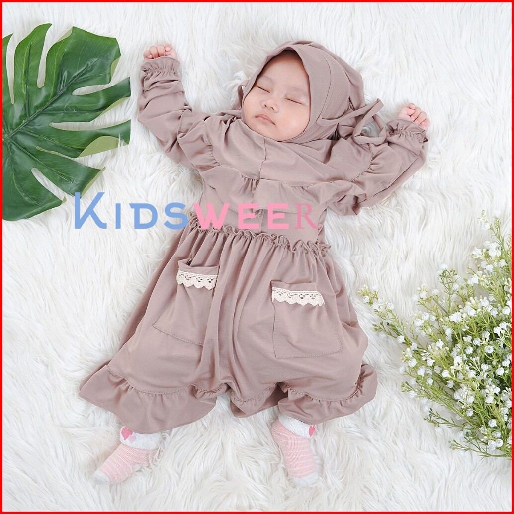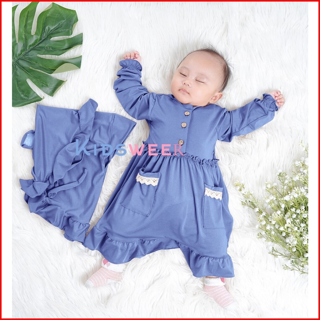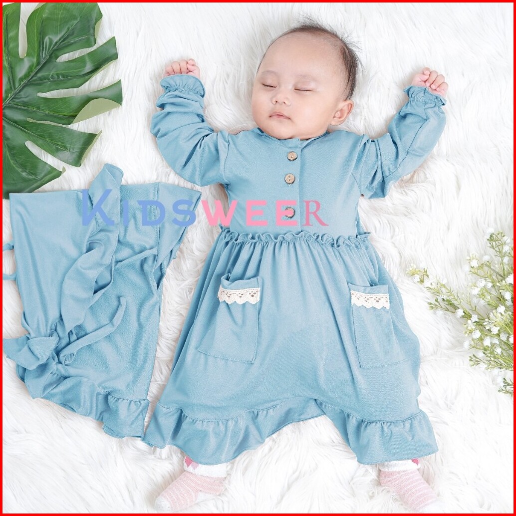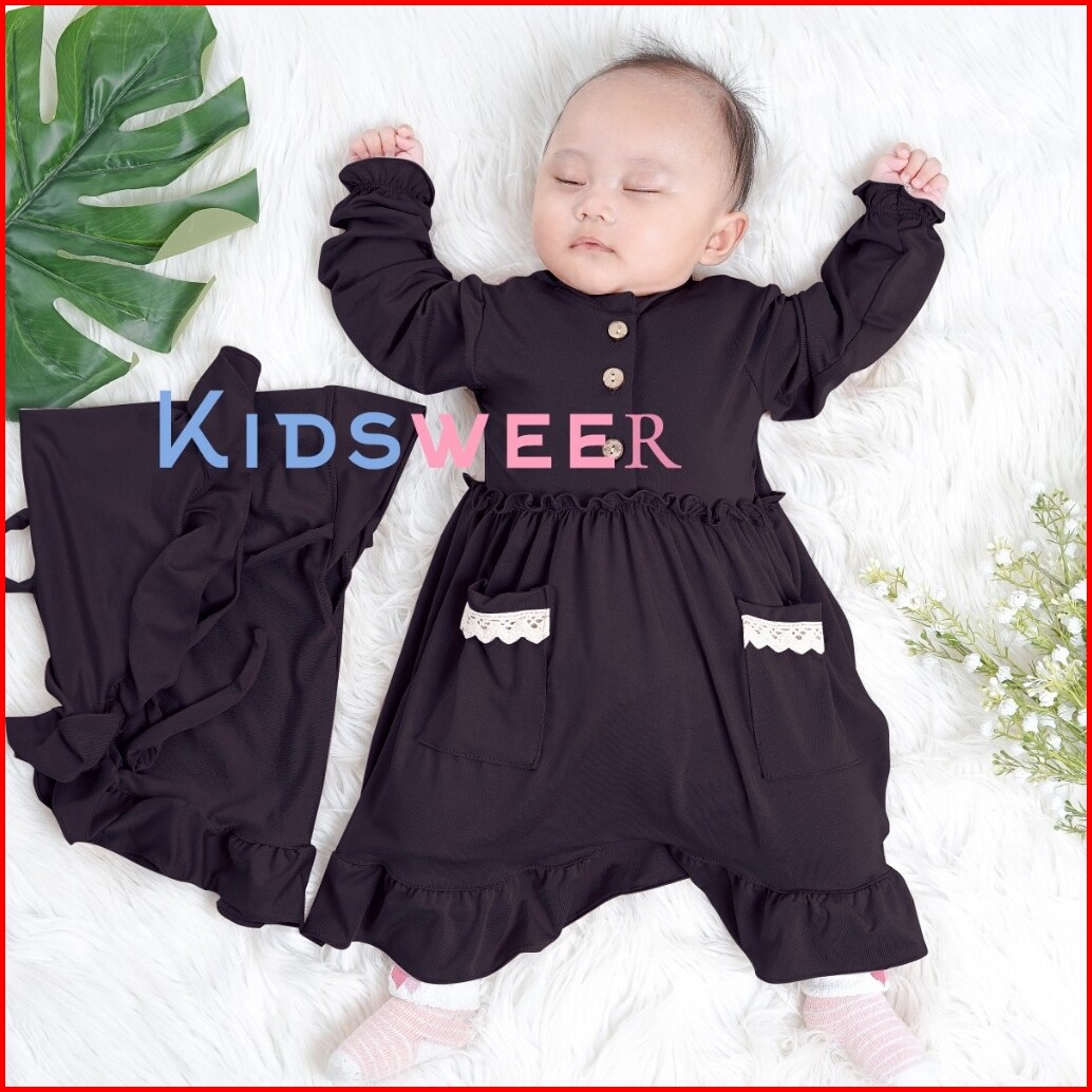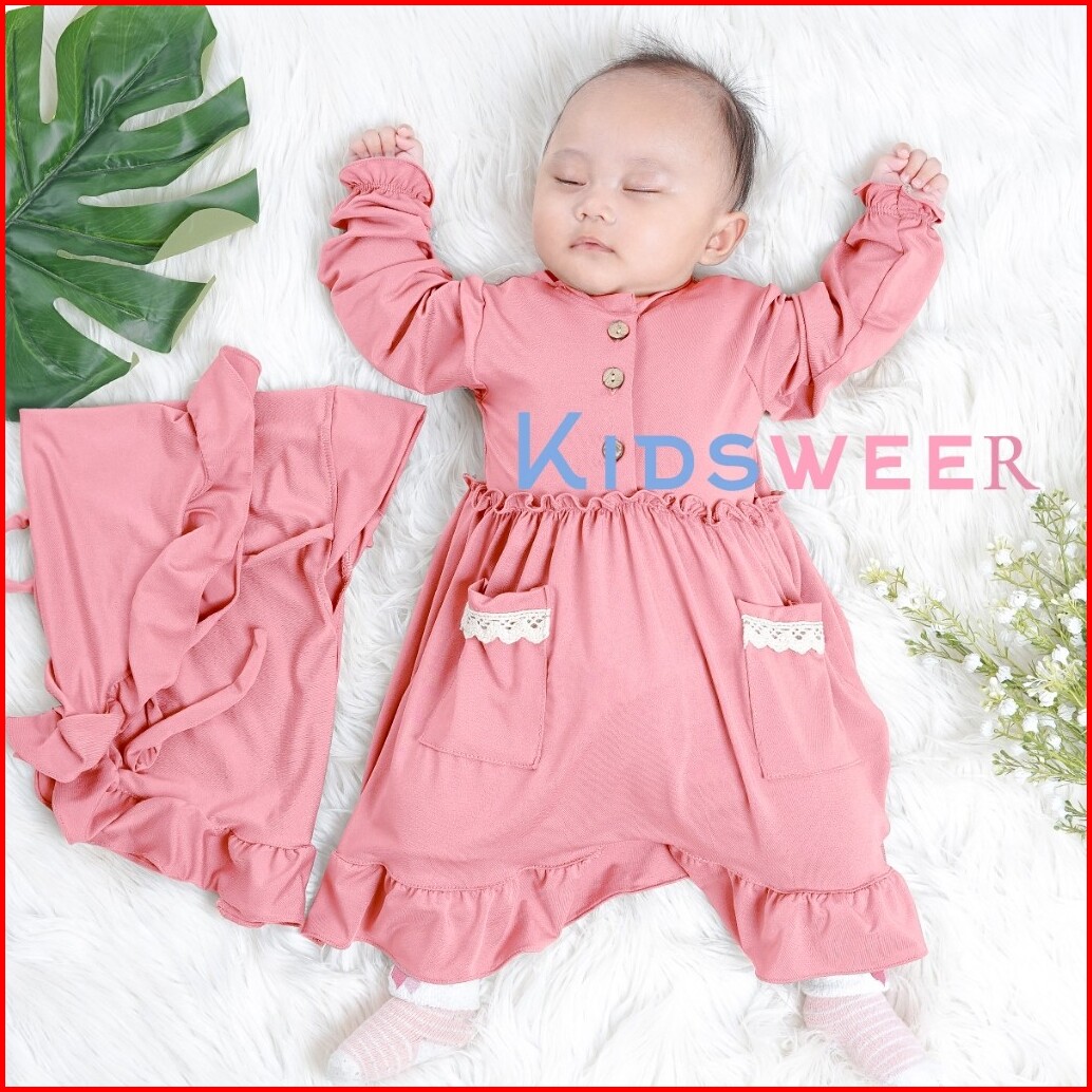 Nourza Baju Gamis Dress Kaftan Abaya Set Hijab Pakaian Tutu Busana Islami Lebaran Aqiqah Untuk Bayi Perempuan 0 12 Bulan