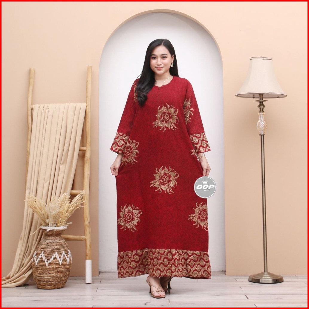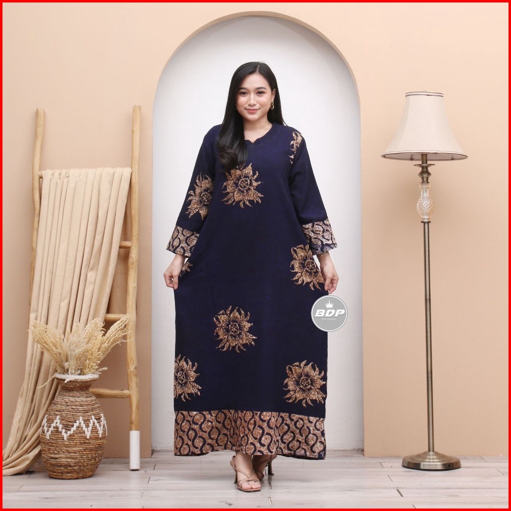 Daster Dress Maura Batik Cap Rayon Grade A Busui Resleting Depan Daster Wanita Lengan Panjang Daster Kekinian - Baju Tid