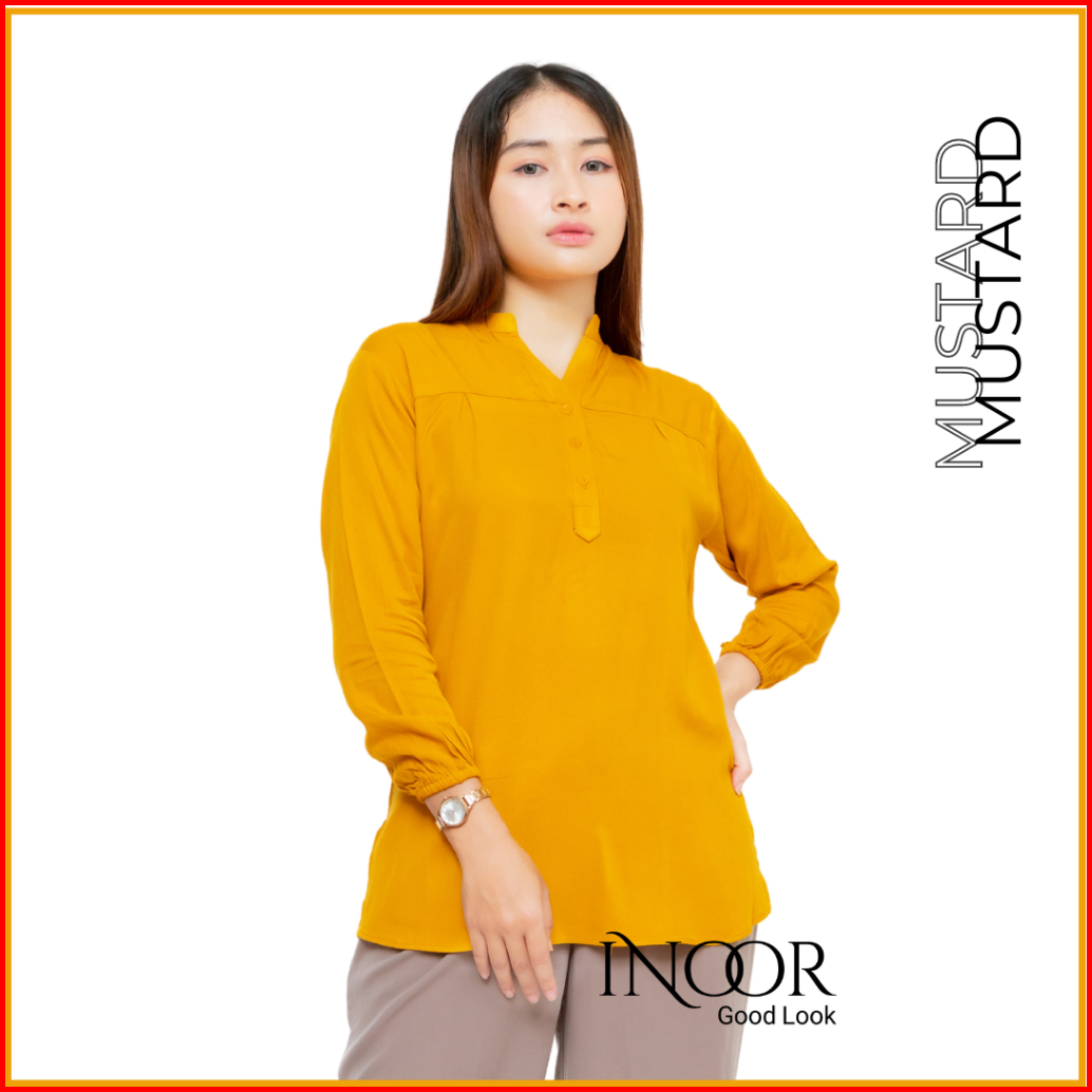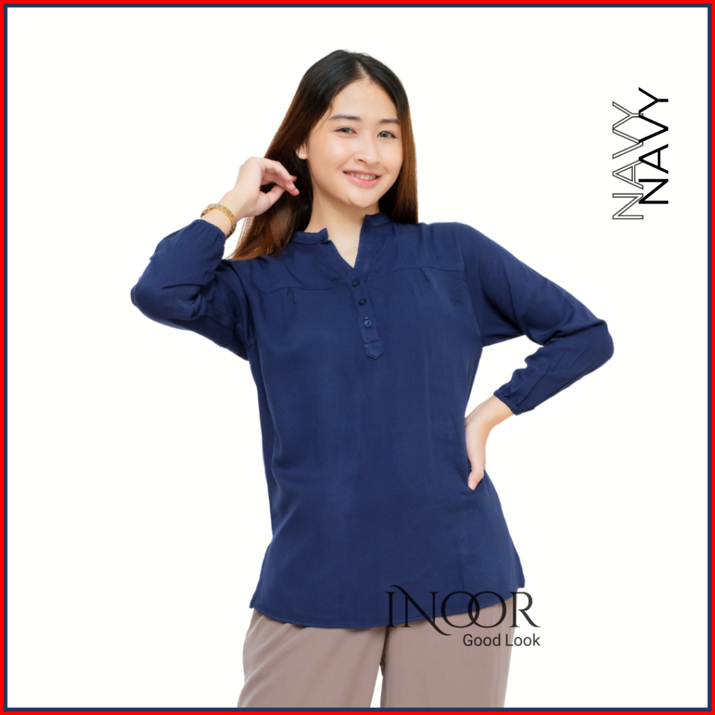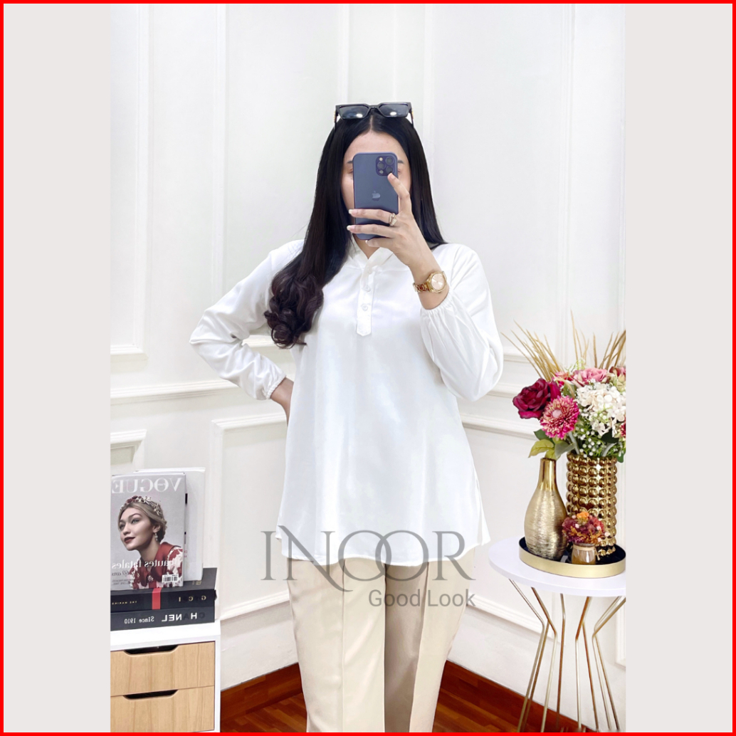 Blouse Polos Premium Lengan Panjang Busui Friendly Lengan Kerut Rayon Twil Uniqlo Original Kancing Depan Kerah Lingkar B
