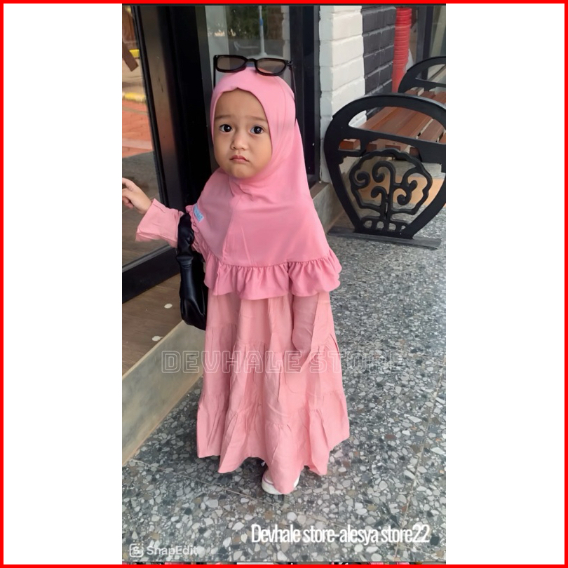Gamis Premium Anak Devhale T3 Rayon Twill Gamis Polos Anak Set Hijab Dress Gamis Bayi Dan Anak Set Kerudung Gamis Lebara