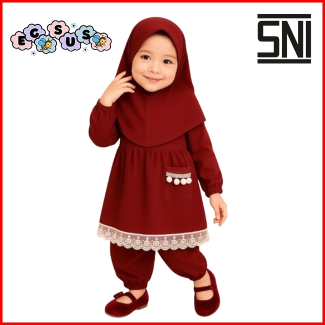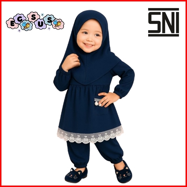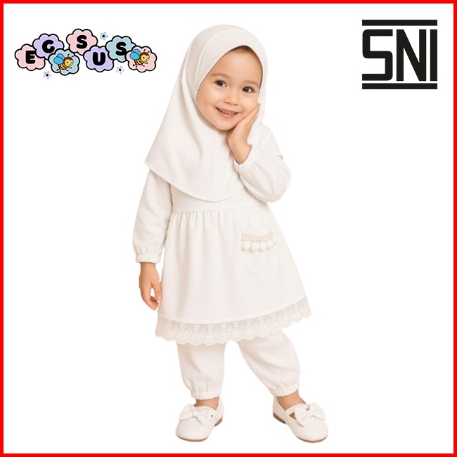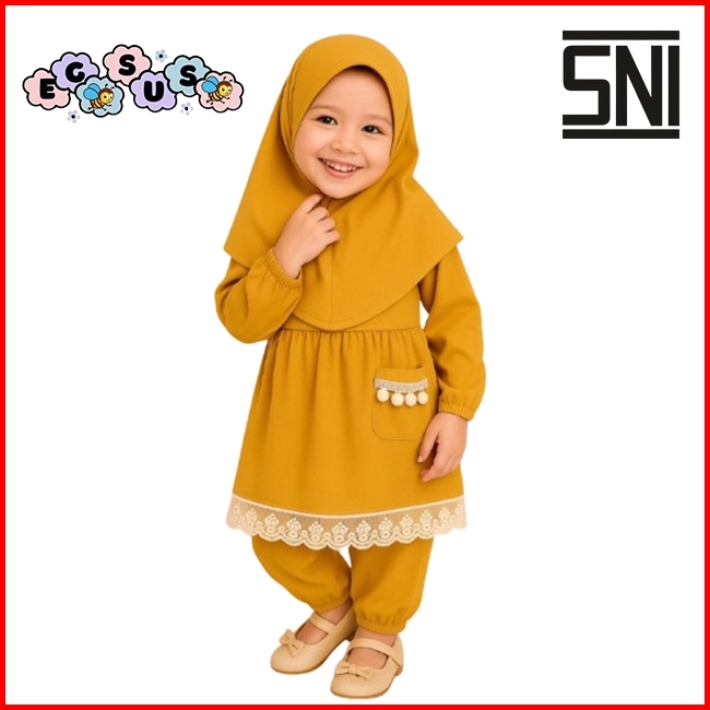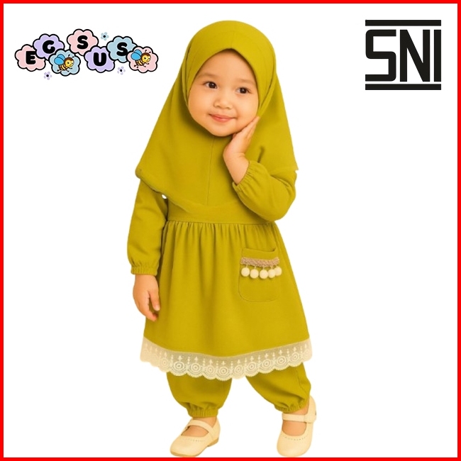 Egsus Setelan Gamis Hijab Alena Bayi Anak Balita Renda Katun Spandek Jersey 0-2 Tahun Pakaian Lime