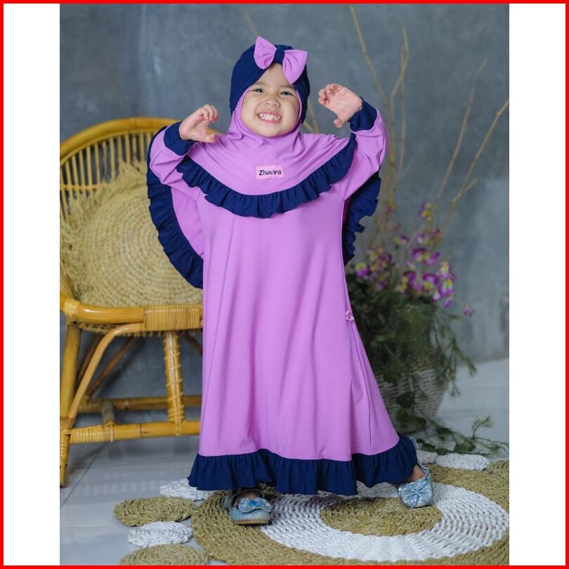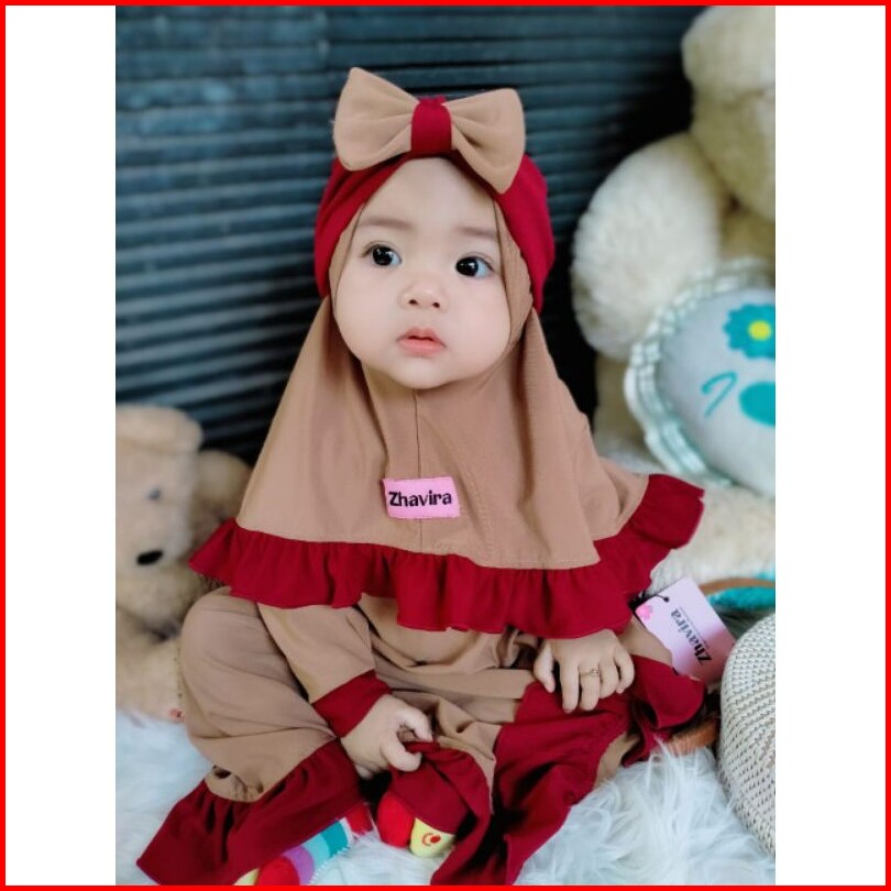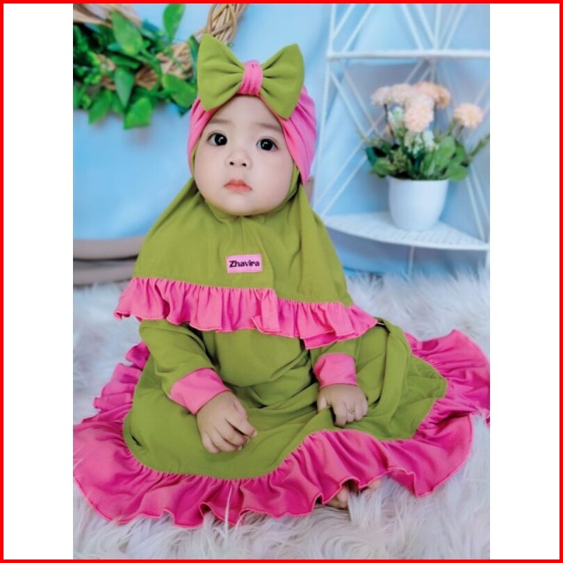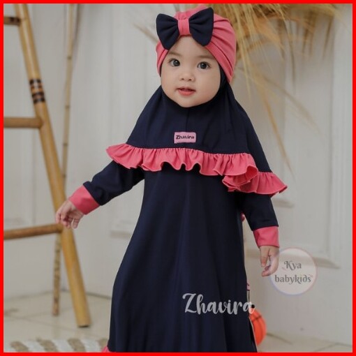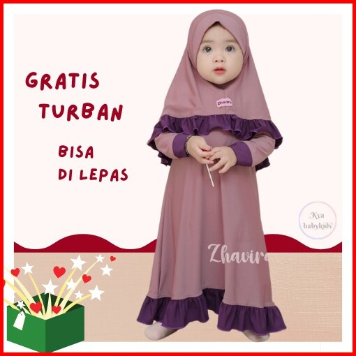 Hiha Gamis Bayi Perempuan Zhavira Rempel Pakaian Muslim Anak Perempuan Set Jilbab Gratis Turban
