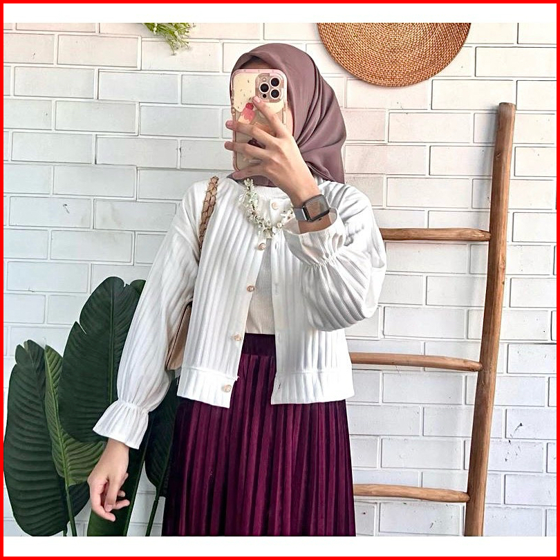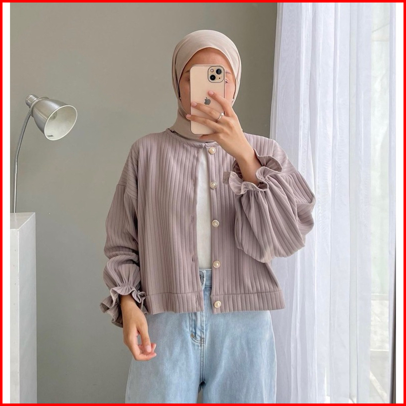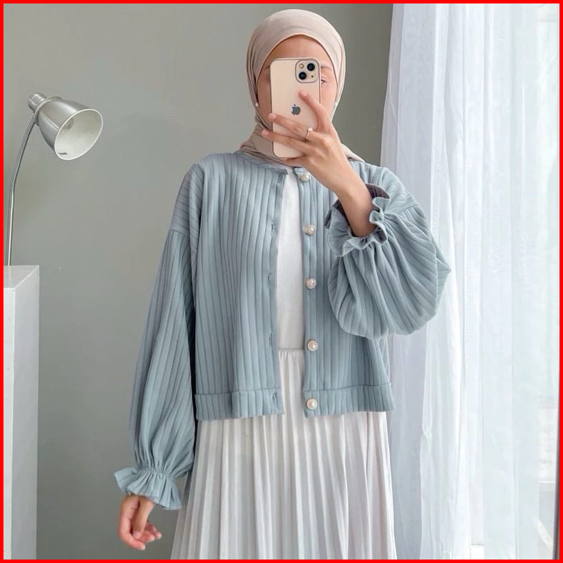 Am - Lea Cardigan Puffy Wanita Outer Top Button Korean Style Knit Wear Kancing Aktif 649-8102