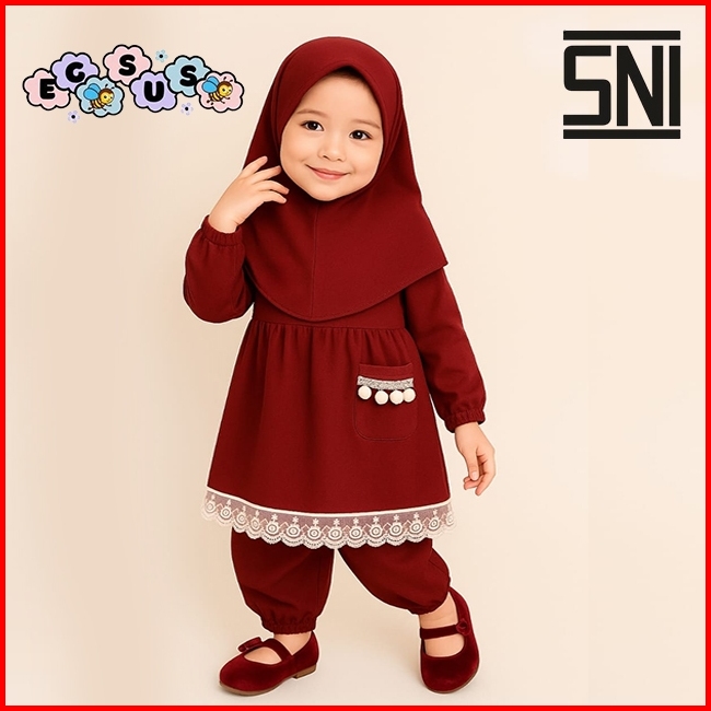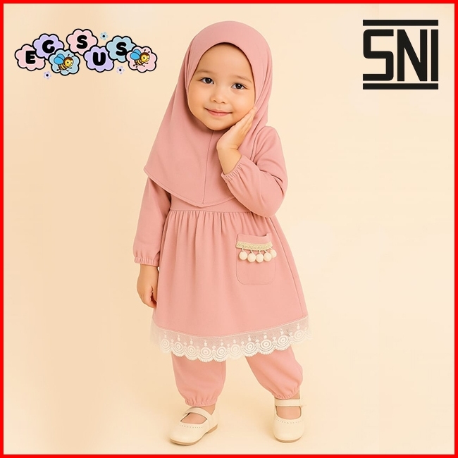 Egsus Setelan Gamis Hijab Alena Bayi Anak Balita Renda Katun Spandek Jersey 0-2 Tahun Pakaian Lime