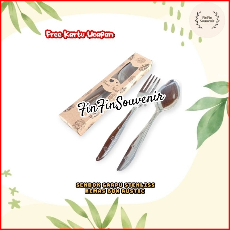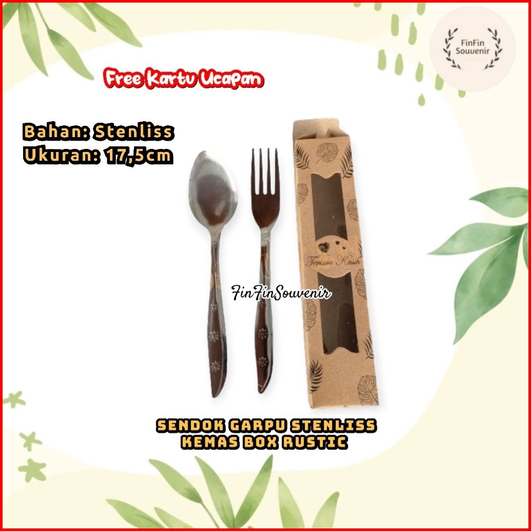 Isi 100set Souvenir Sendok Garpu Stenlis Kemas Box Rustic Souvenir Pernikahan