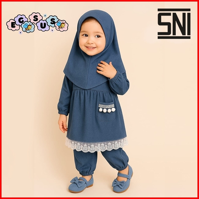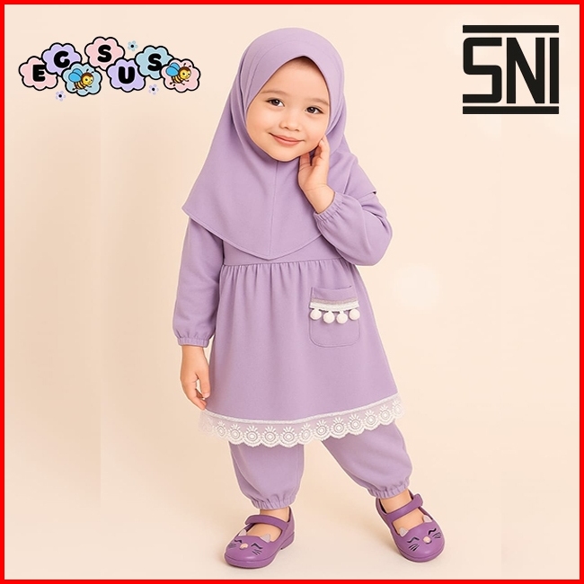 Egsus Setelan Gamis Hijab Alena Bayi Anak Balita Renda Katun Spandek Jersey 0-2tahun Pakaian Putih