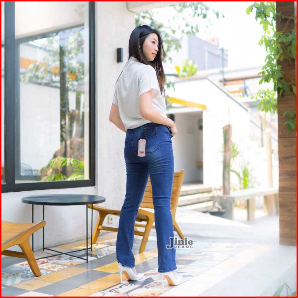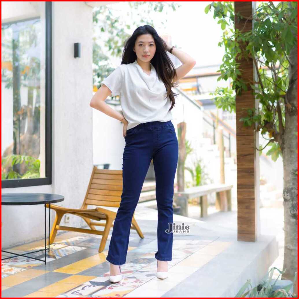 Jiniejeans Celana Jeans Wanita Cutbray Stretch Model Pinggang Karet Big Size Soft Jeans Legging Cutbray