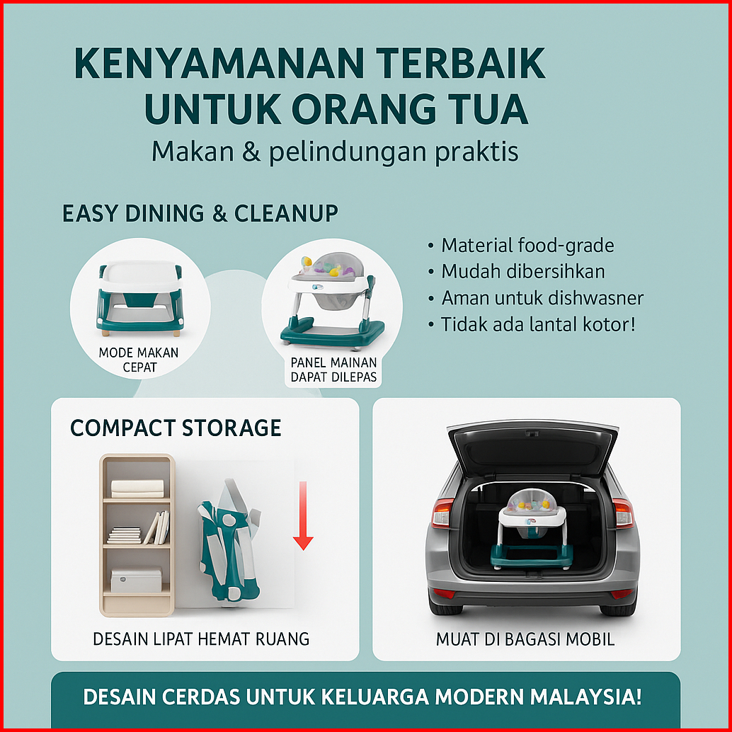 Beige Walker Bayi 2in1 Mobil Anak Alat Bantu Jalan Bayi Bisa Dilipat Portabel Usia 6-24 Bulan