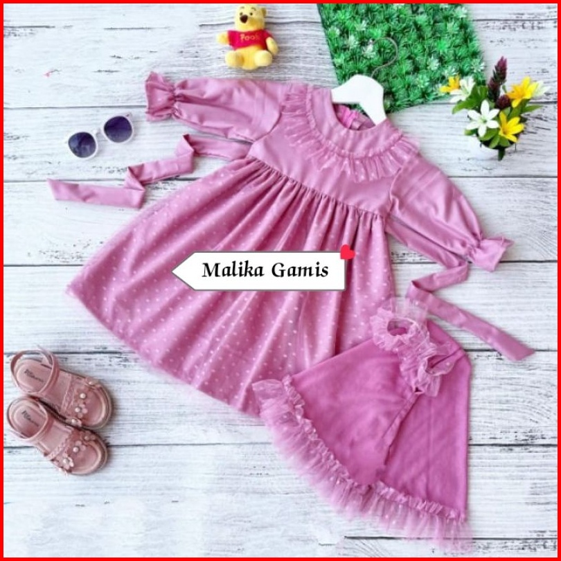 Dress Brukat Anak Mix Tile Dot Terbaru - Gamis Newborn Bayi Pesta Aqiqoh Lebaran Baju Muslim Anak Gamis Bayi - Gamis Til