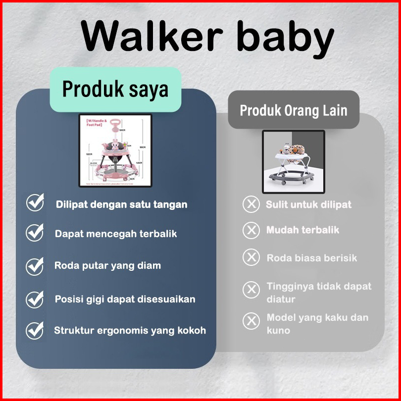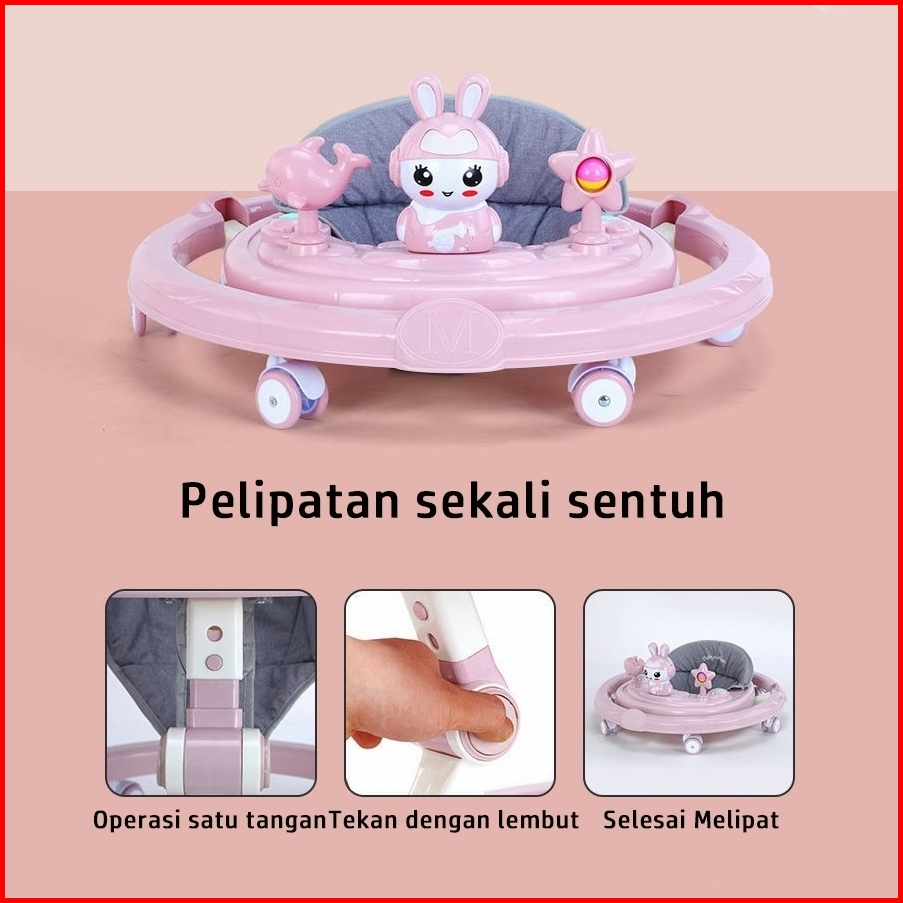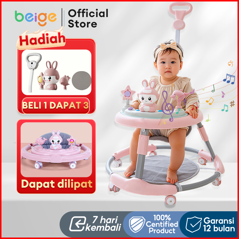 Beige Baby Walker Bayi Dilipat Portabel Kotak Musik Alat Belajar Jalan Anti Jatuh