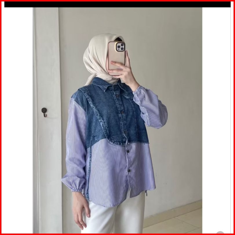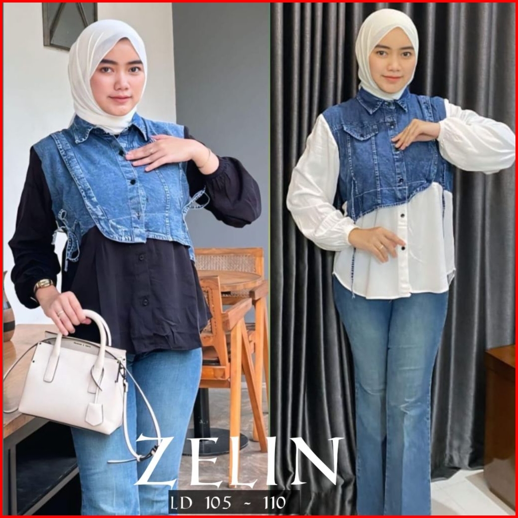 Kemeja Zelin Jeans Kombinasi Rayon Twiell Model Bigsize