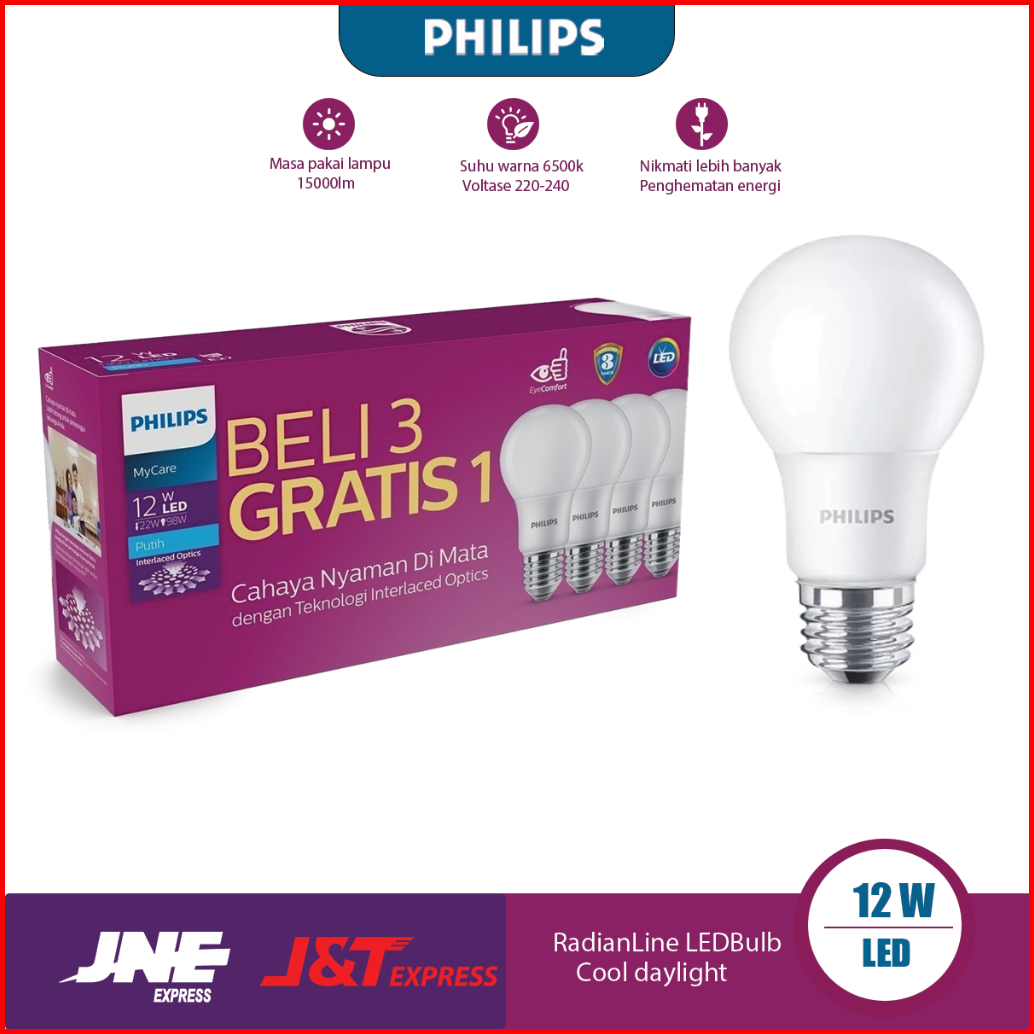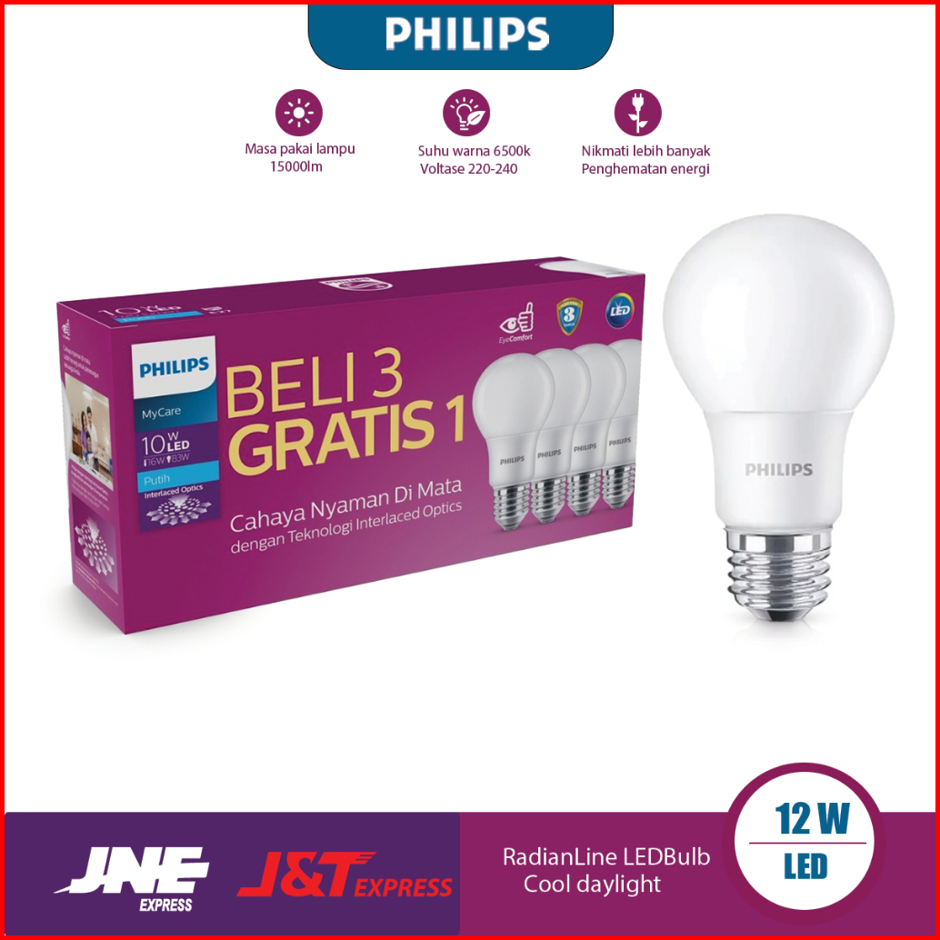 Beli 3 Gratis 1lampu Led Philip Paket12w 14.5 Watt Multipack Lampu Led Rumah Led Bulb 6500k Putih