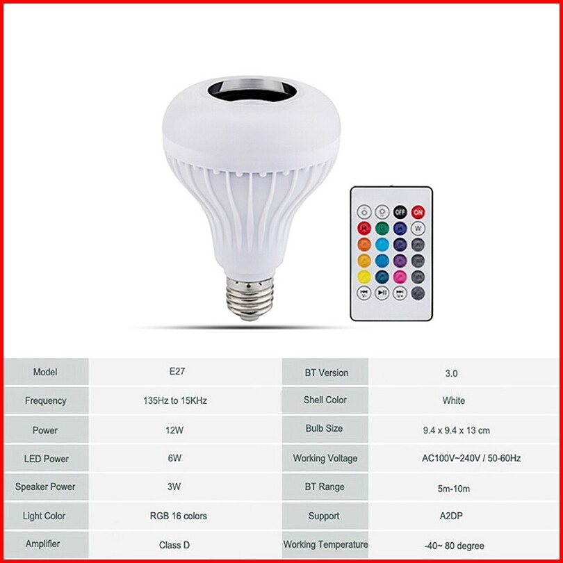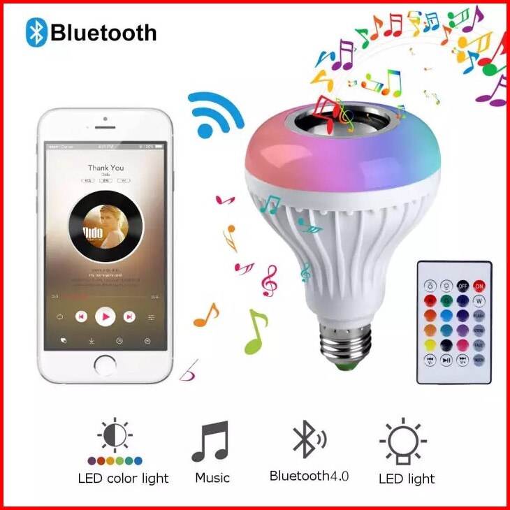 Speaker Bluetooth Wireless Lampu Led Rgbw E27 12w Rgbw E27 Smart Led Music Light Bulb