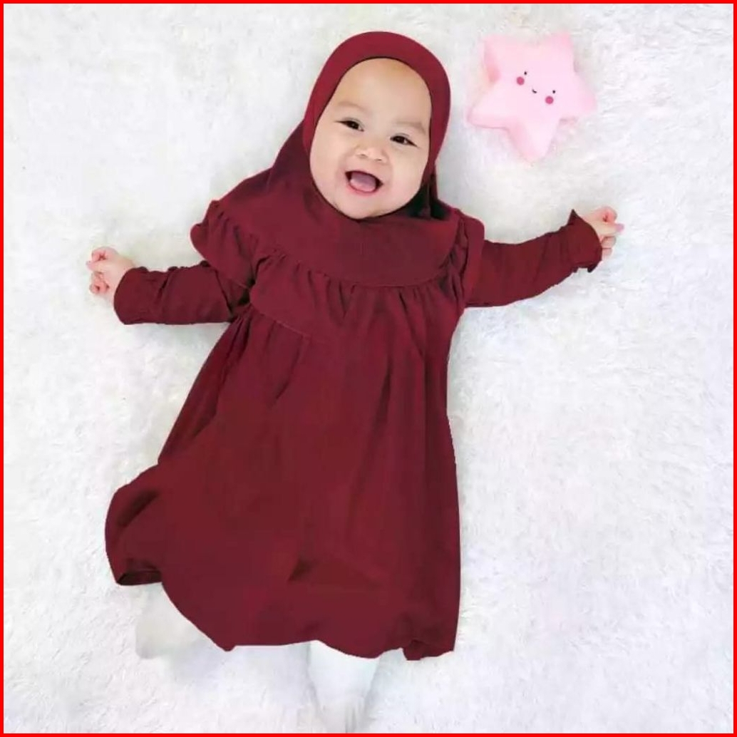 Set Muslim Gamis Bayi Polos Perempuan Usia 0 18 Bulan