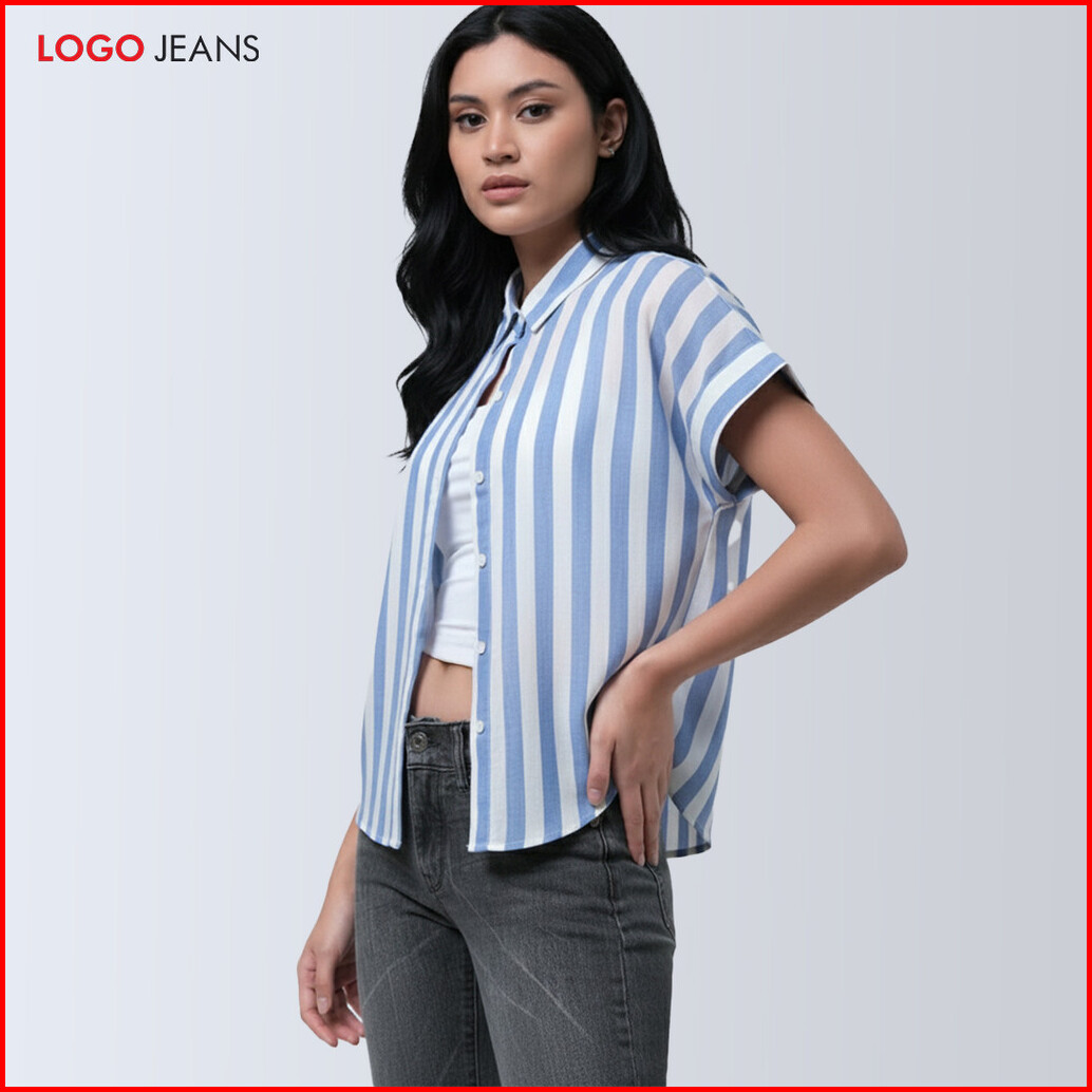 Logo Jeans Kemeja Wanita Griffyna Blue White 22a57l5bi