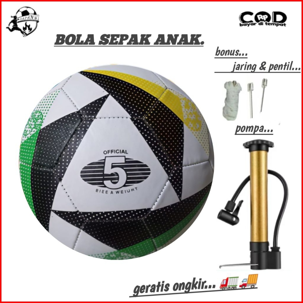Bola Sepak Size 5 Bola Anak Bola Kaki Bliter Ringan Bonus Pompa Pentil Jaring Ball