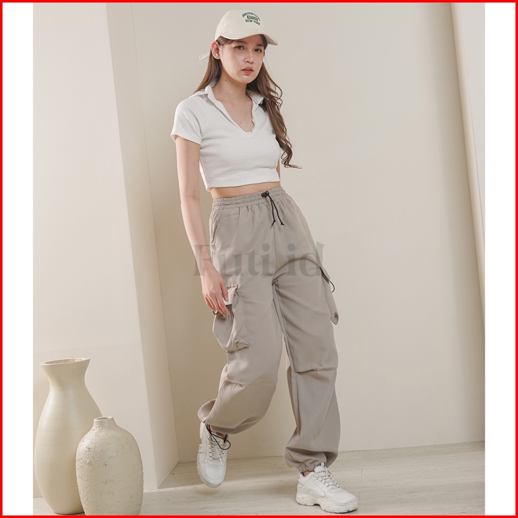 Futi Id - Jessie Pants Celana Cargo Highwaist - Ivory
