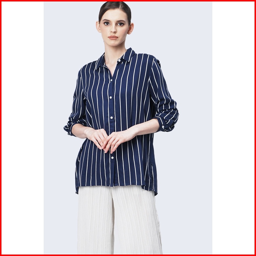 Bodytalk Kemeja Wanita Gillian Navy White 24528t9nw