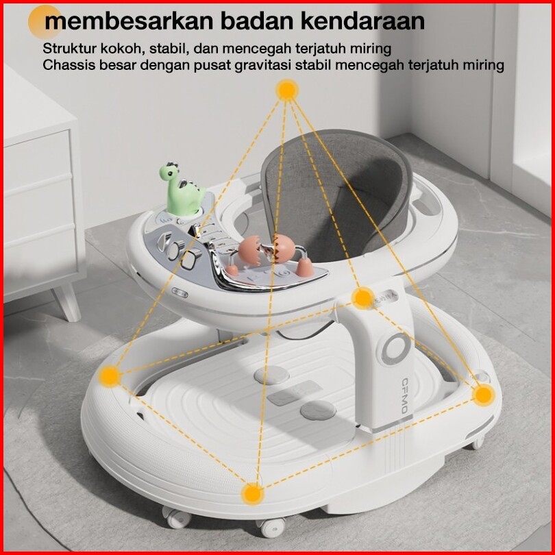 Beige Baby Walker Lipat Mainan Kereta Dorong Bayi Dengan Pegangan Praktis Aman