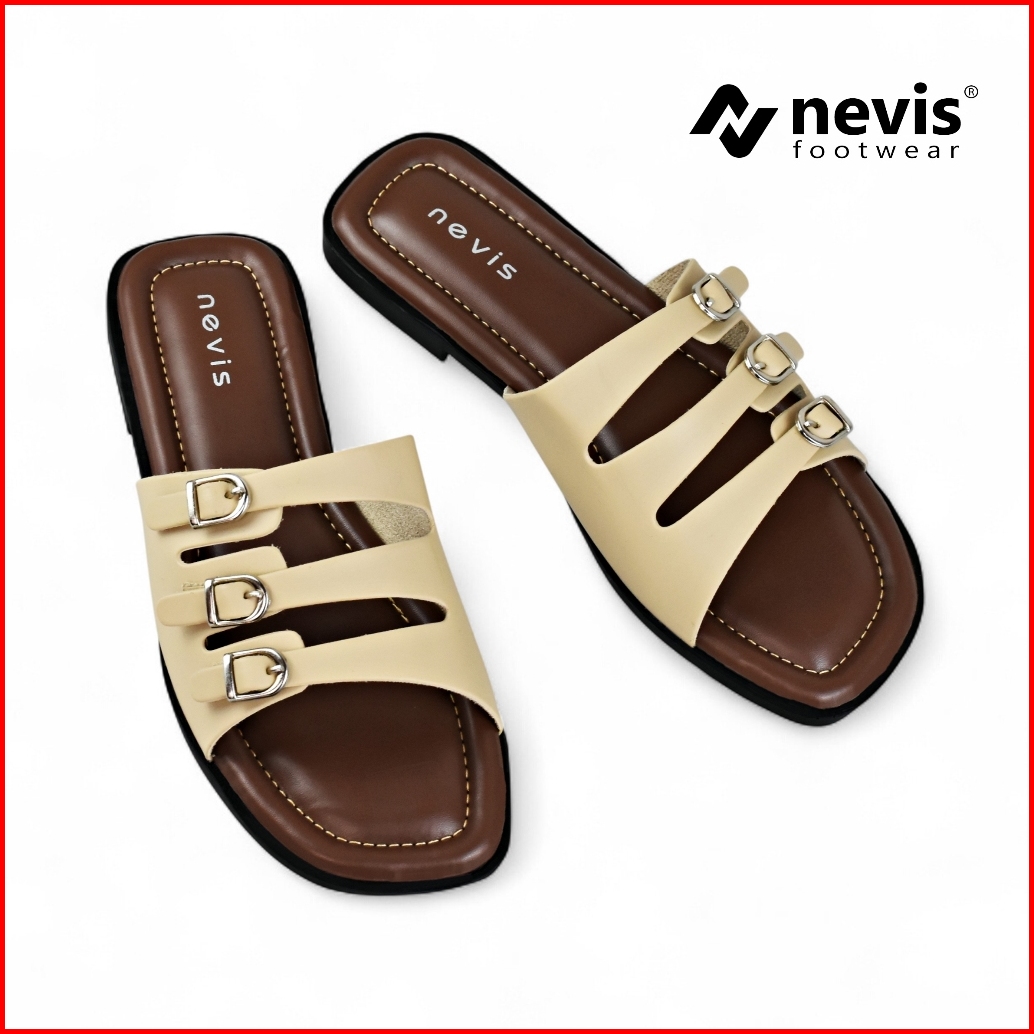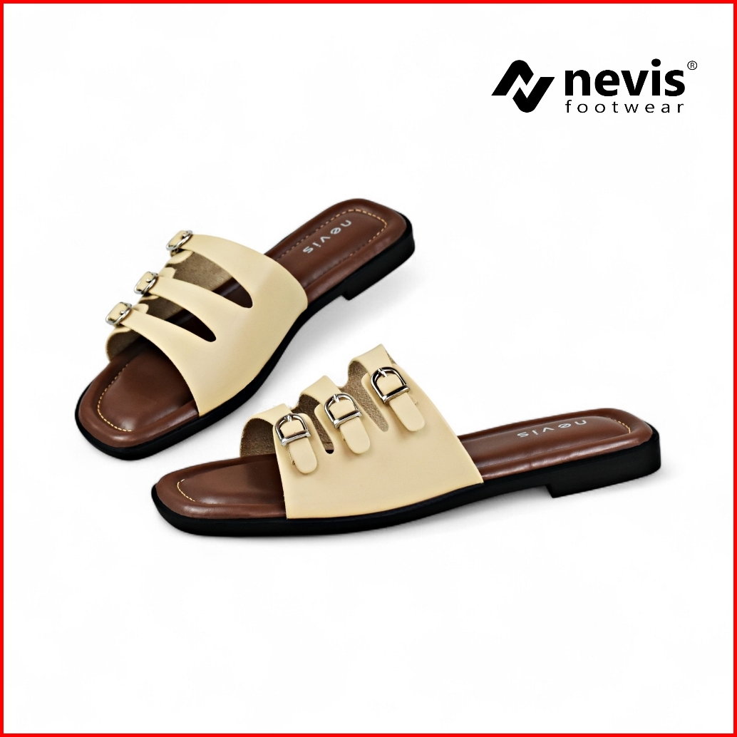 Nevis Sandal Wanita Monalisa Flat Teplek Insole Tebal Empuk Nyaman Sendal Slop Wanita Kulit Kekinian