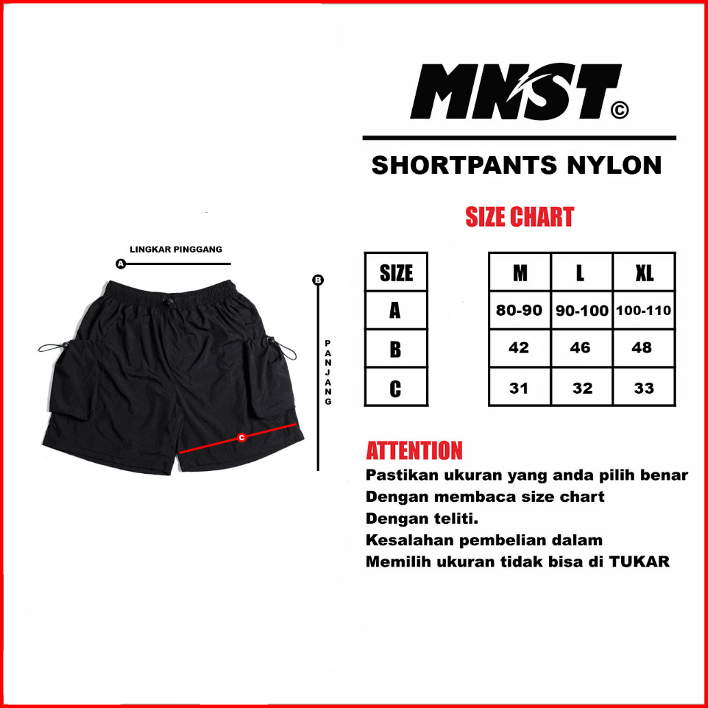 Mnst Nylon Crincle Shortpants Celana Pendek Cargo Black Revival