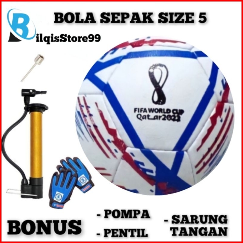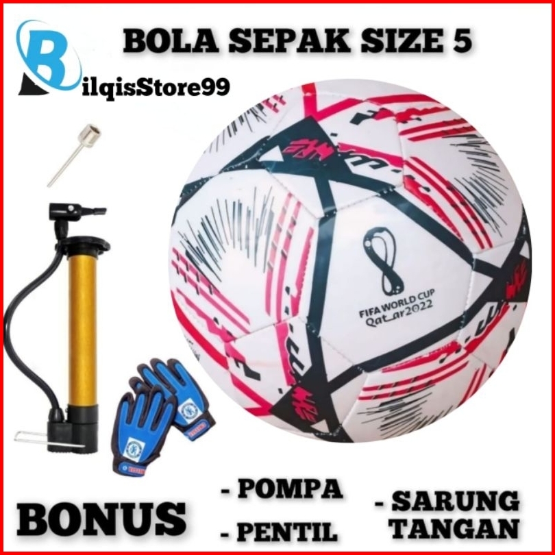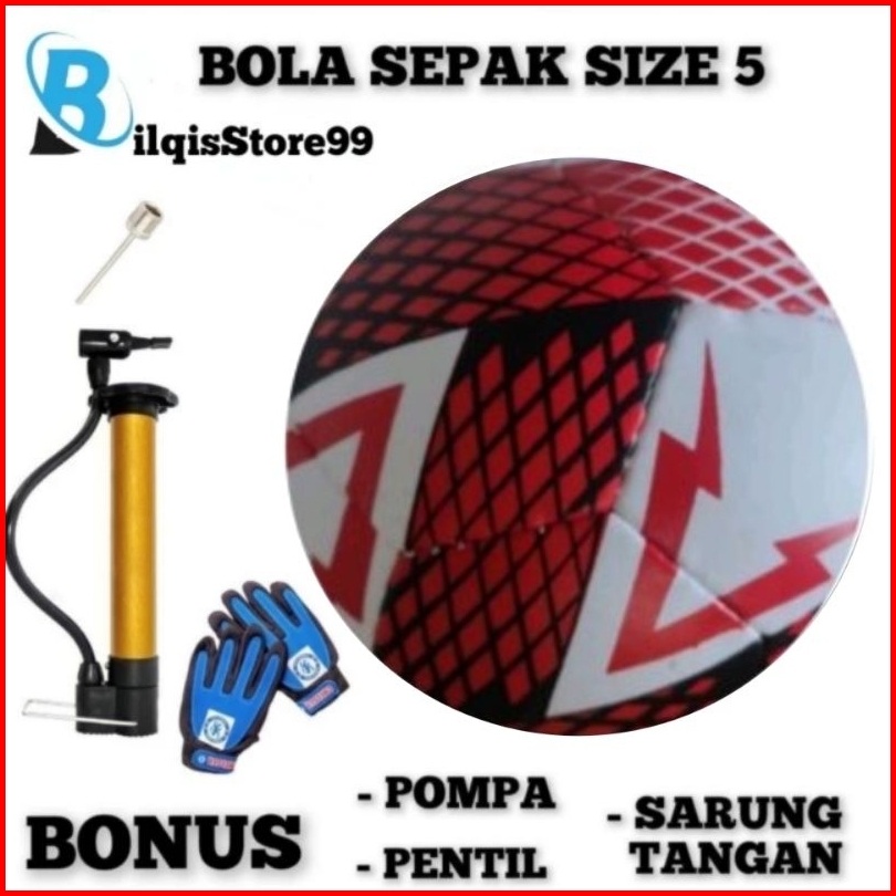Bola Sepak No 5 Murah Bahan Lembut Bonus Pompa Sarung Tangan