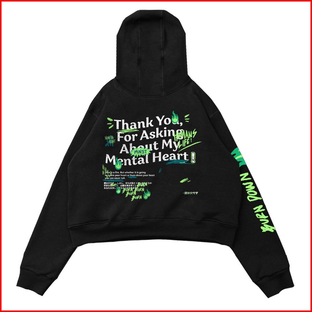Mnst Crop Hoodie Oversize Unfinished Black Mental Heart