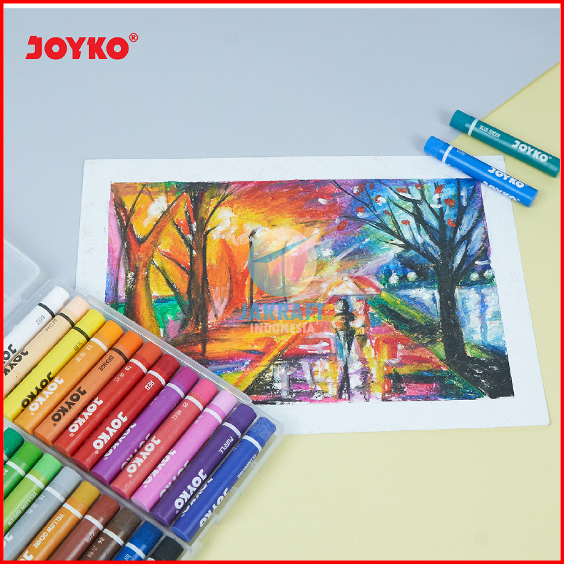 24 Pcs Krayon 24 Warna Joyko Op-24cr Oil Pastels Crayon Aman Murah Anti Air Hard Case