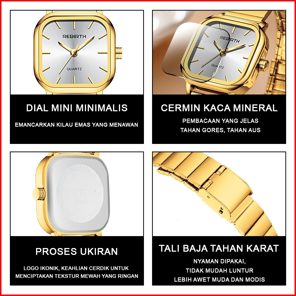 Rebirth Jam Tangan Wanita Anti Air Original Kasual Tali Stainless Steel Jam Tangan Cewek Korea