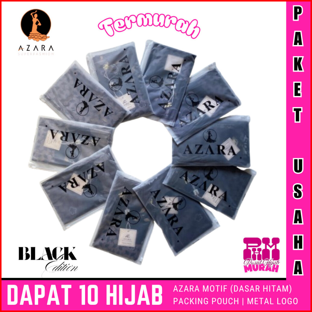 Shop19 Paket 10 Pcs Hijab Azara Oskara Motif Black Edition Logo Printing Original Azara Superfashion