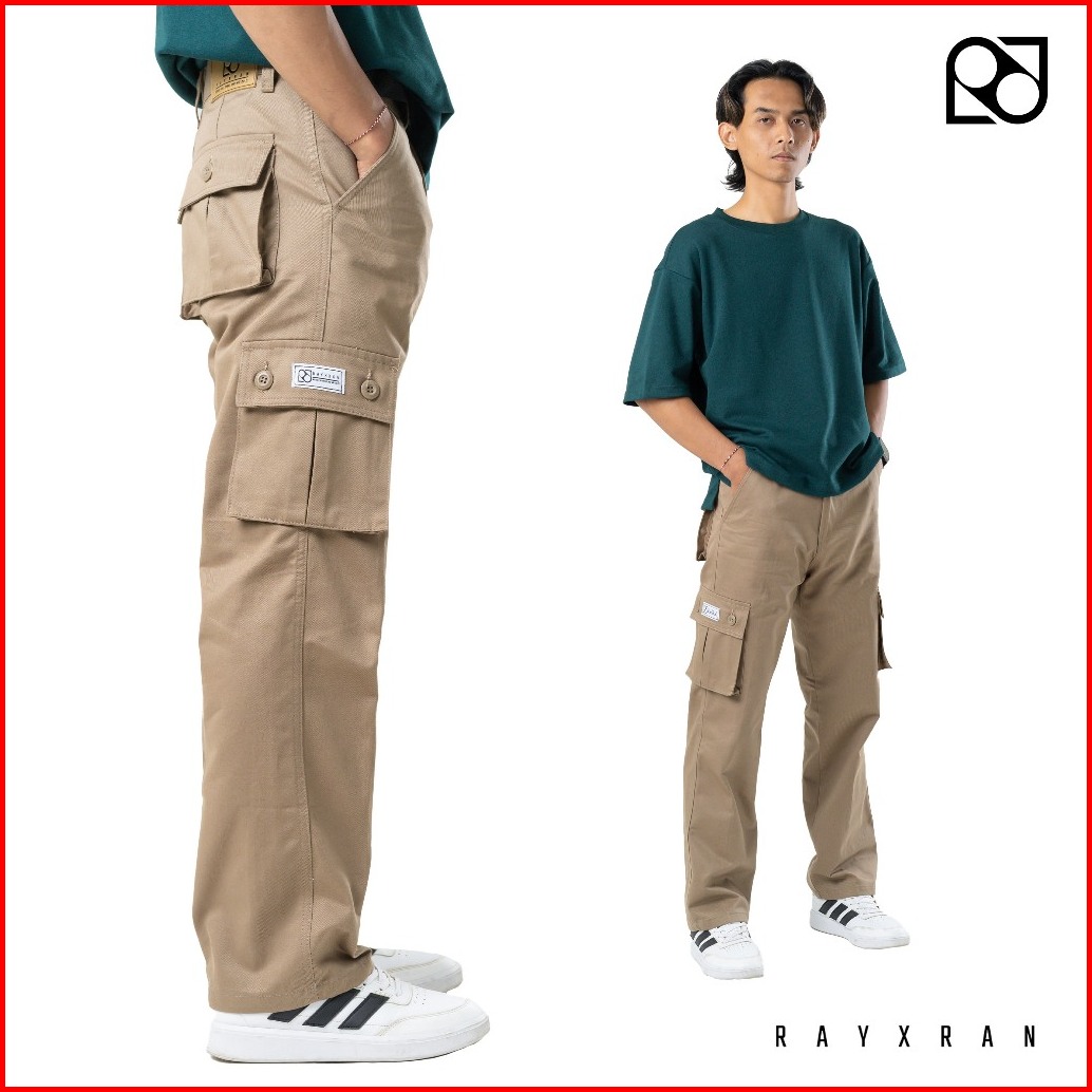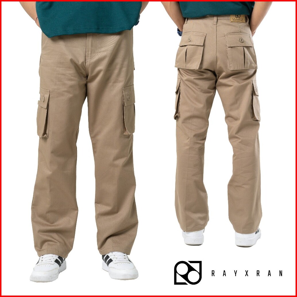 Rayxran Celana Cargo Panjang Reguler Pria Mocca