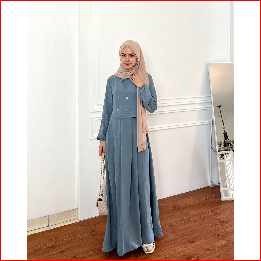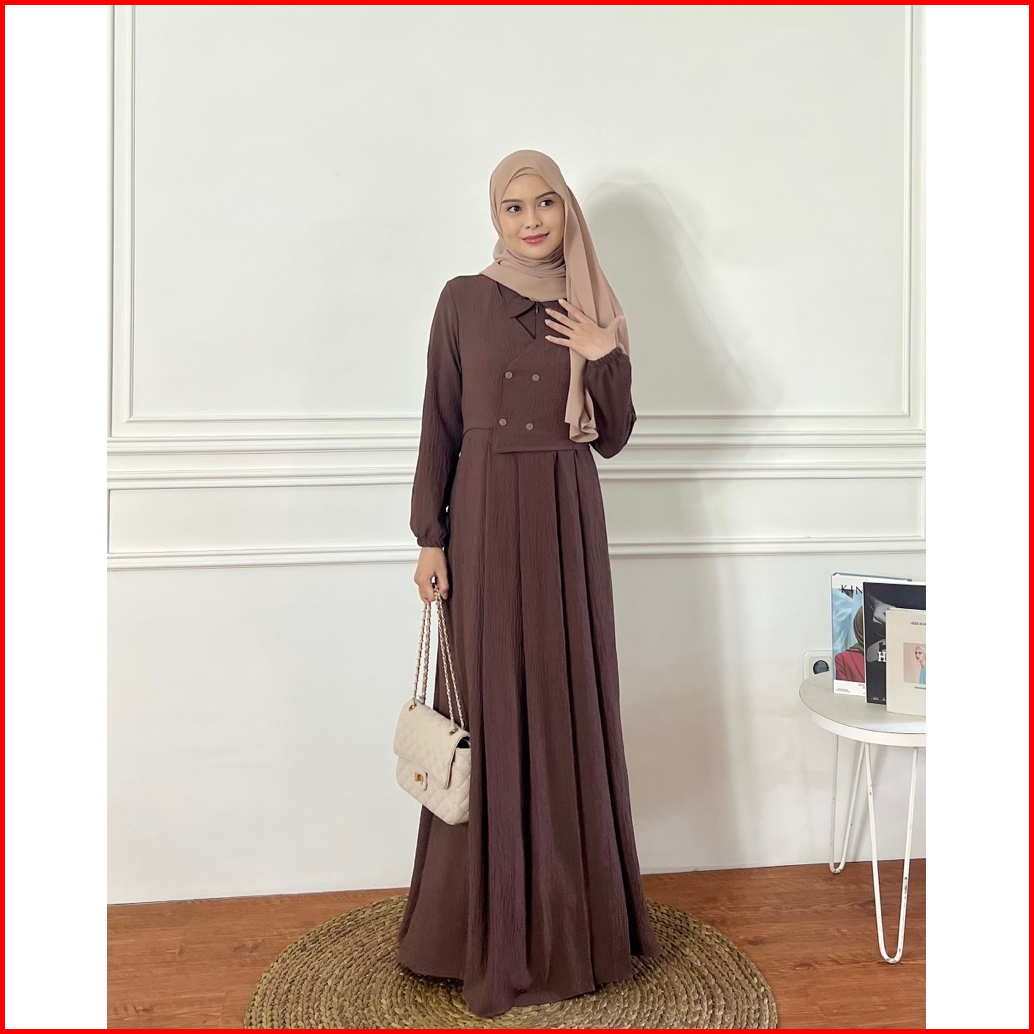 Dafinty - Belvina Dress Bahan Premium Crinkle Casual Formal Terdapat Resleting Busui