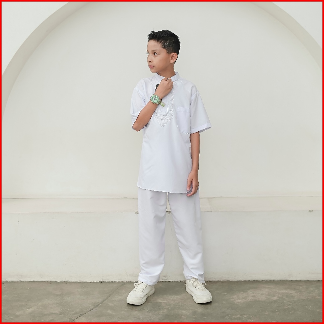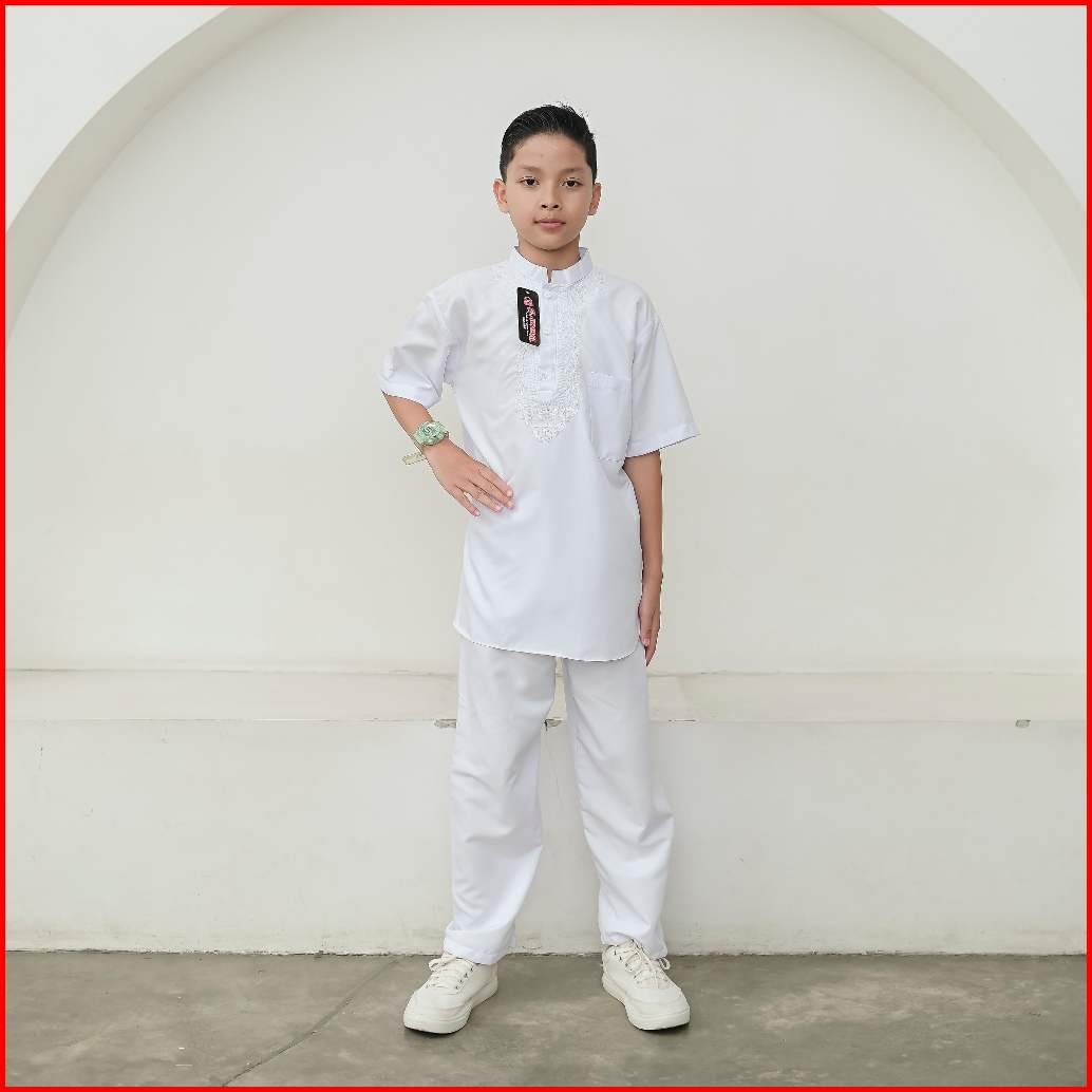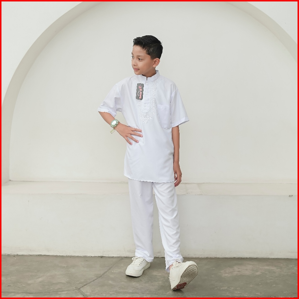 Setelan Baju Koko Putih Lengan Pendek Anak Laki-laki Katun Micro Premium