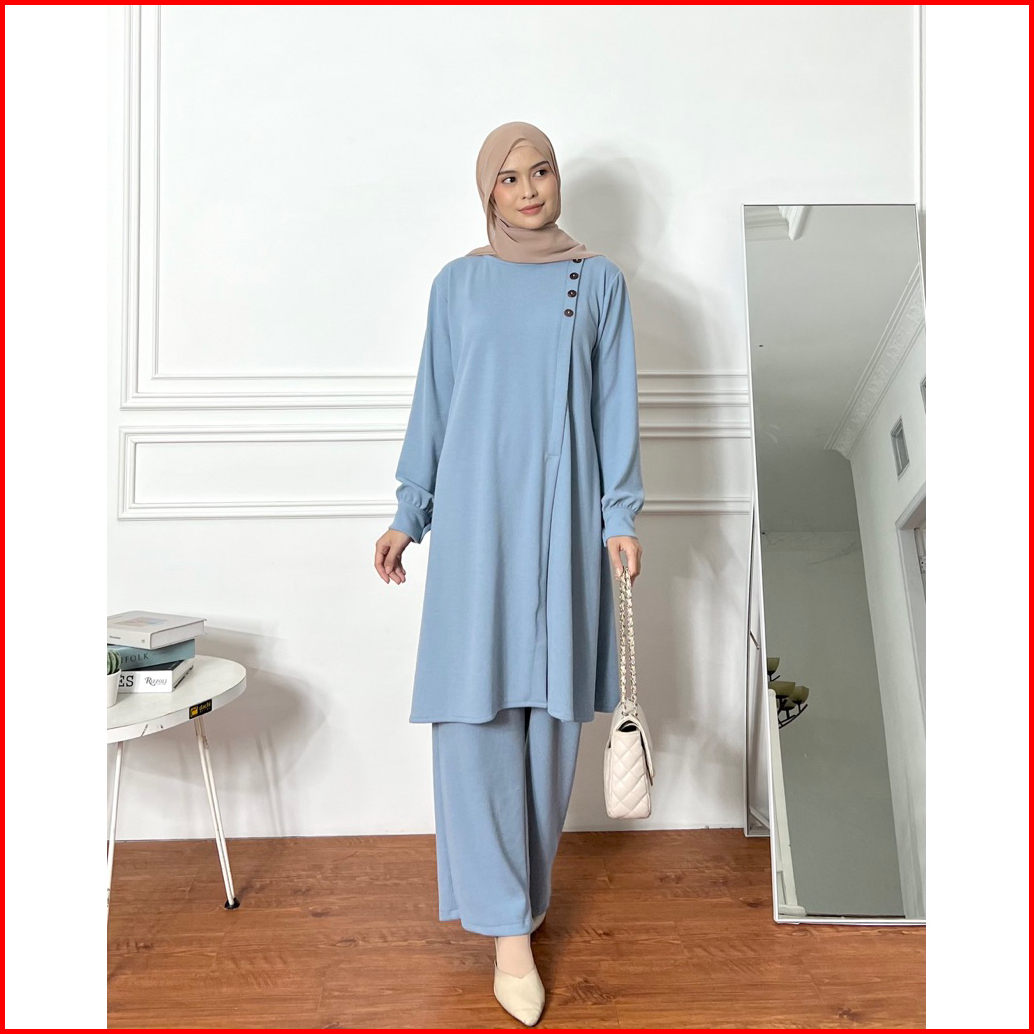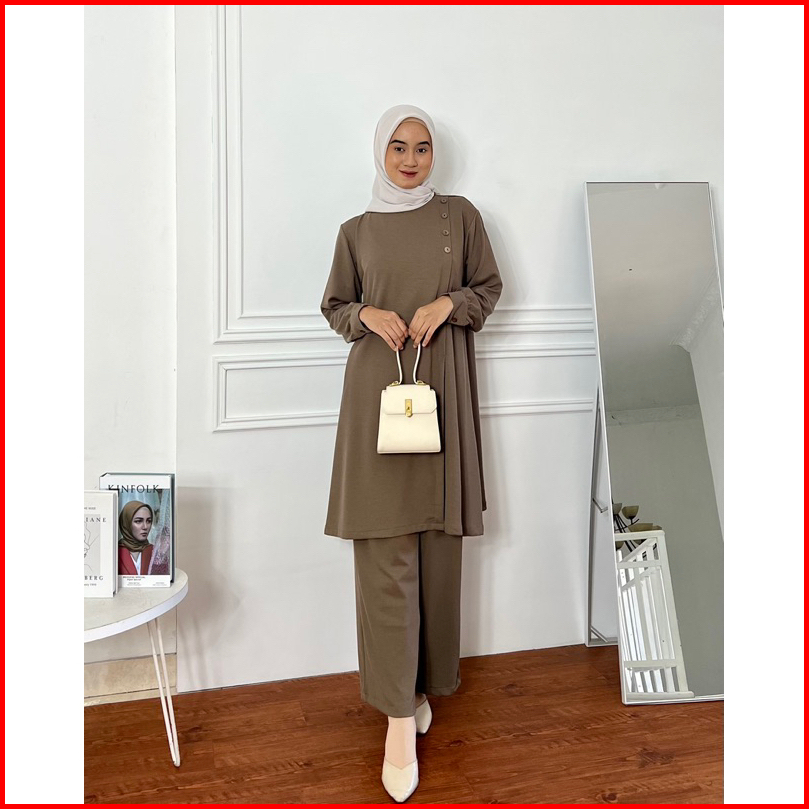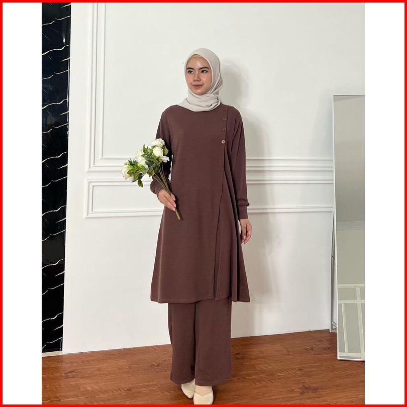 Dafinty - Khalisa Set Tunik Celana Bahan Premium Knit Setelan Wanita Muslimah Terbaru Kekinian