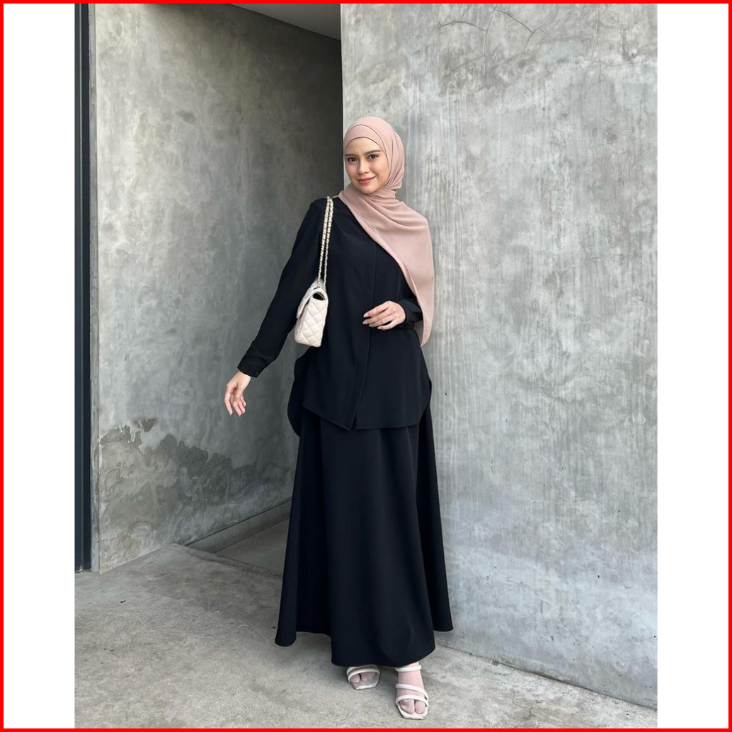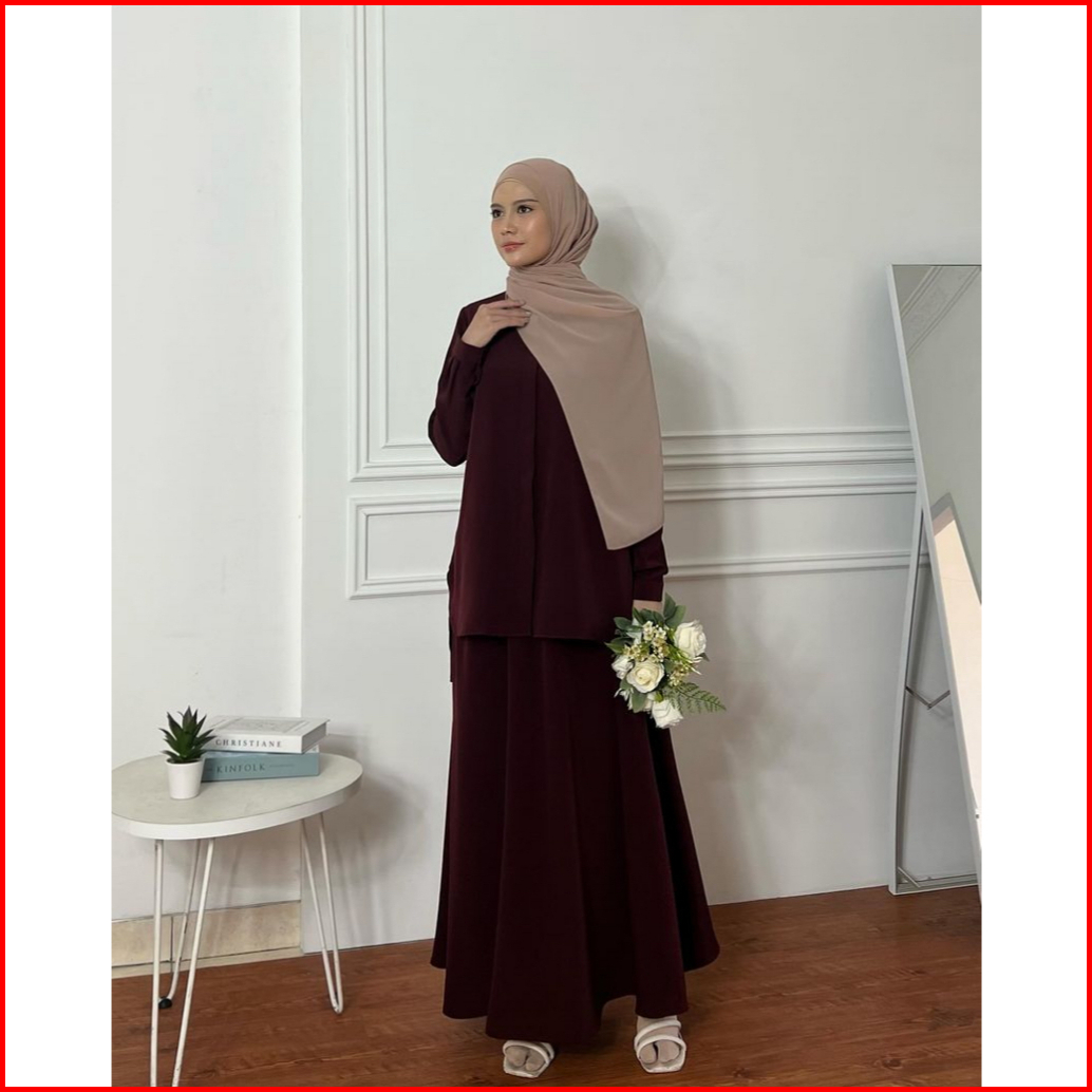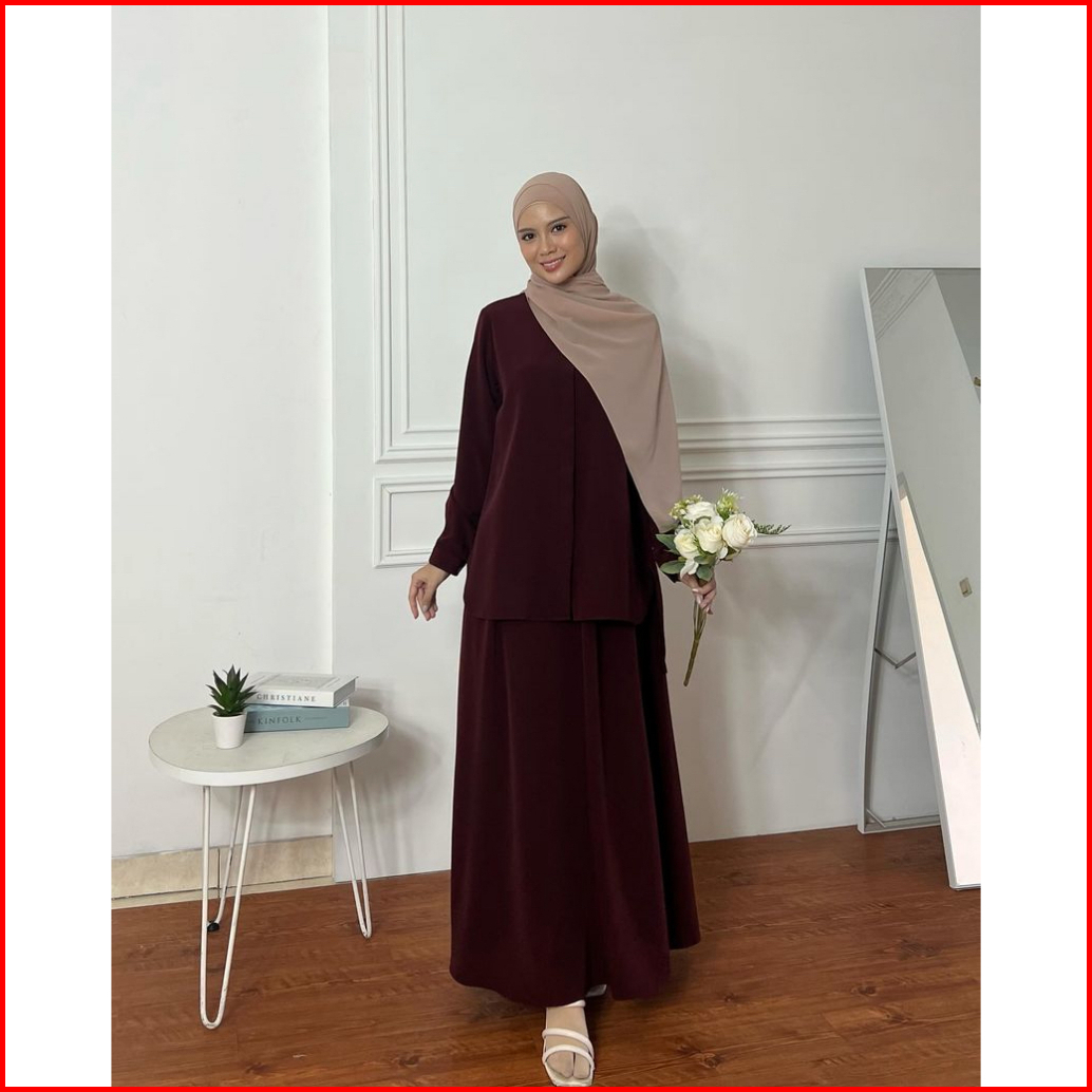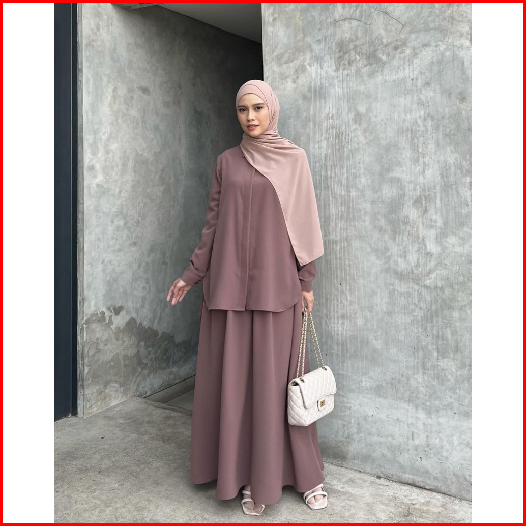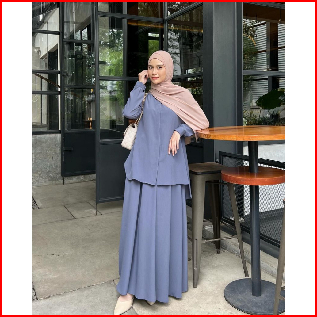 Elmiza - Yumi Set 2 In 1 Kemeja Rok Bahan Premium Beverly Lux Set Wanita Muslimah Terbaru