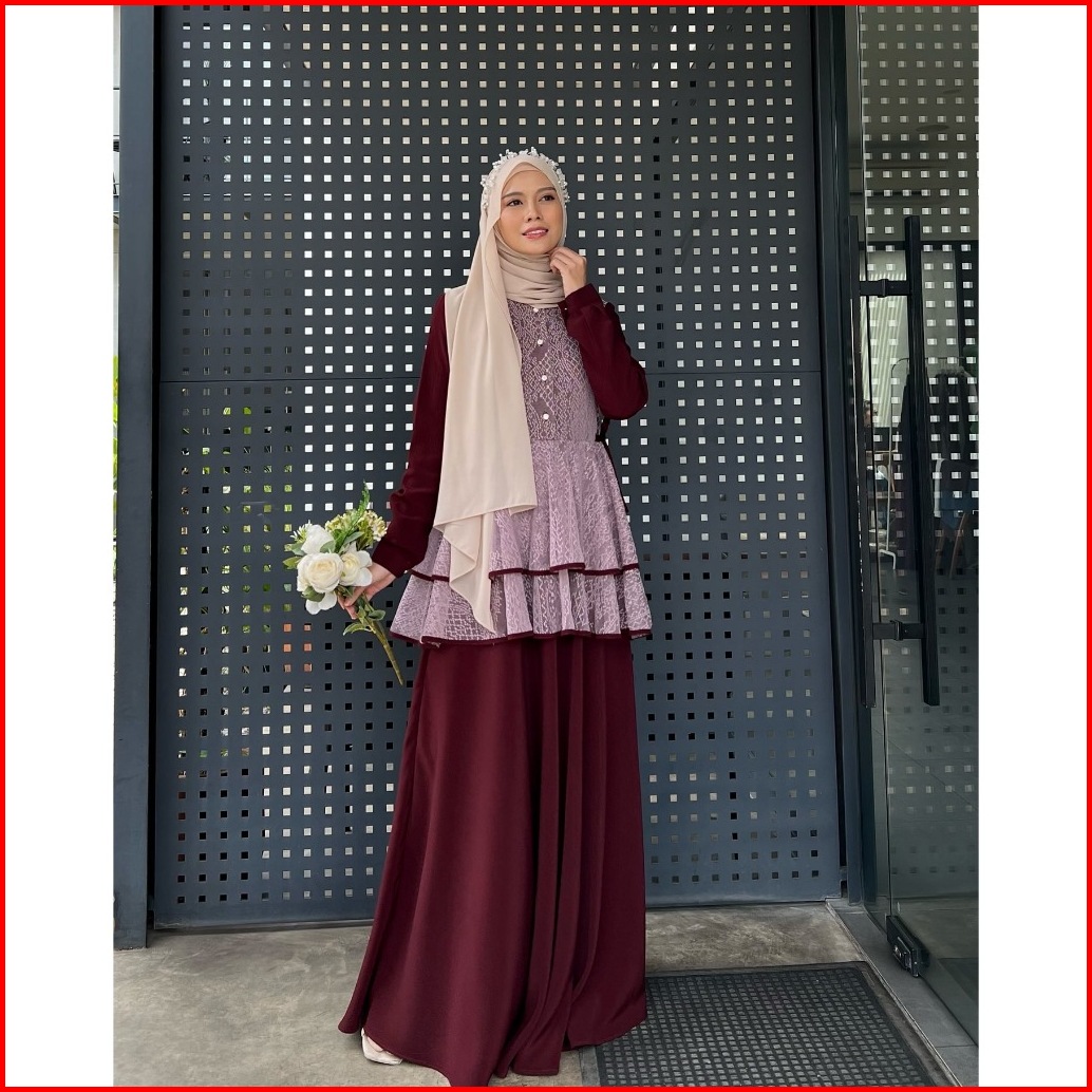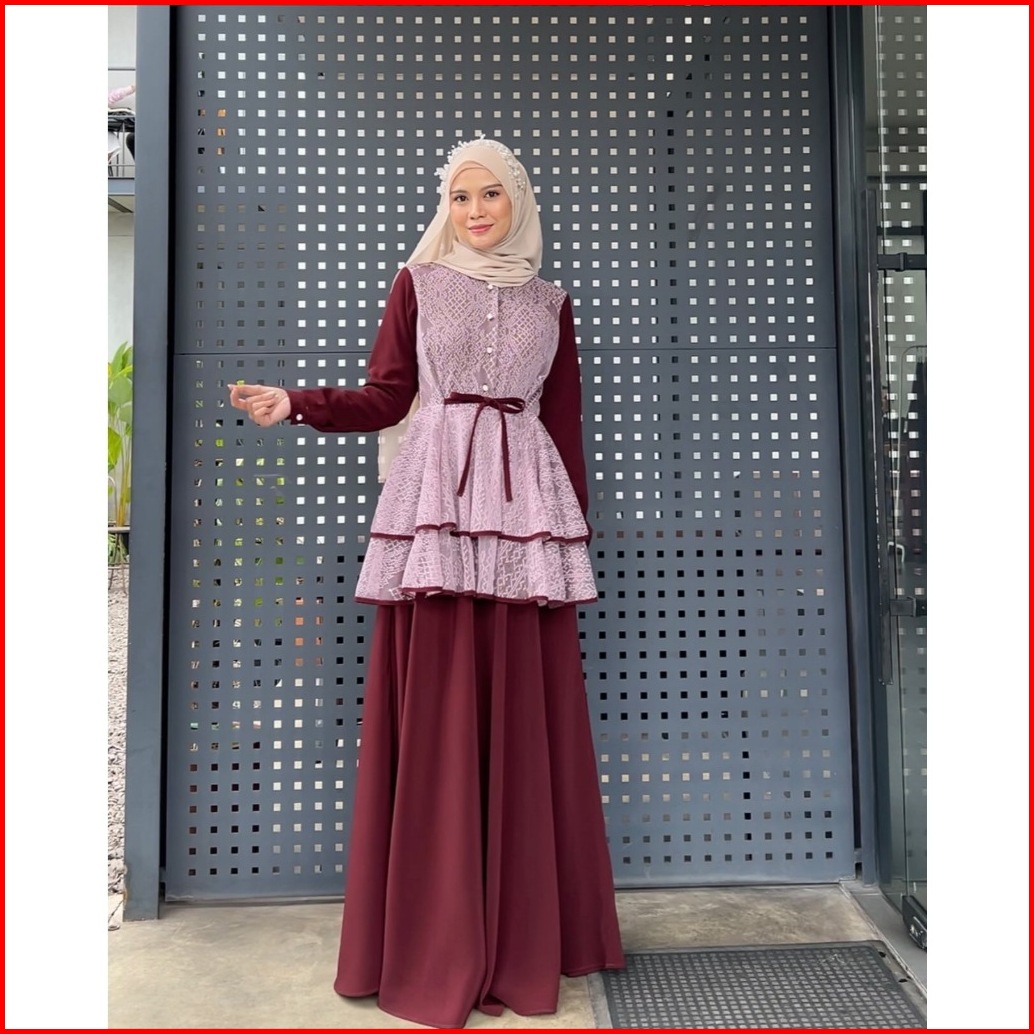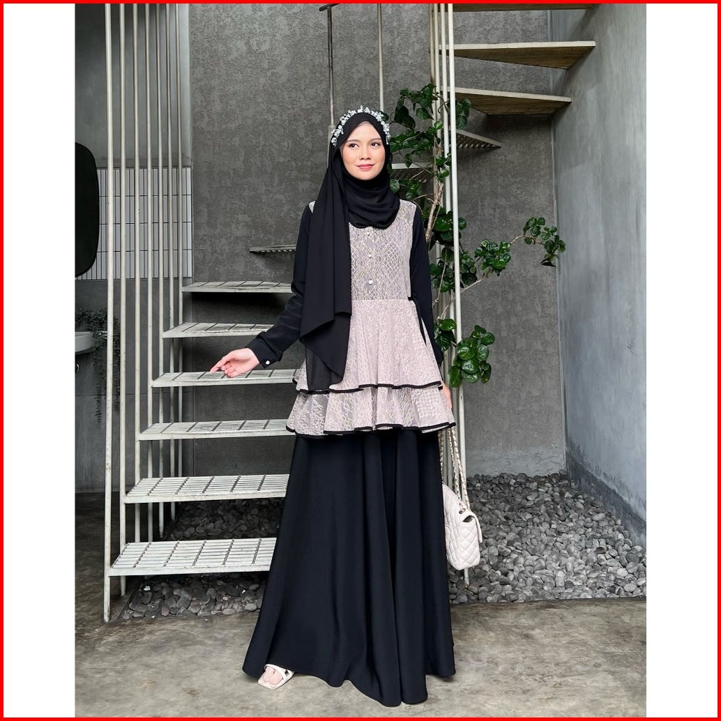Elmiza - Serena Dress Bahan Premium Beverly Lux Mix Brukat Dress Muslimah Terbaru