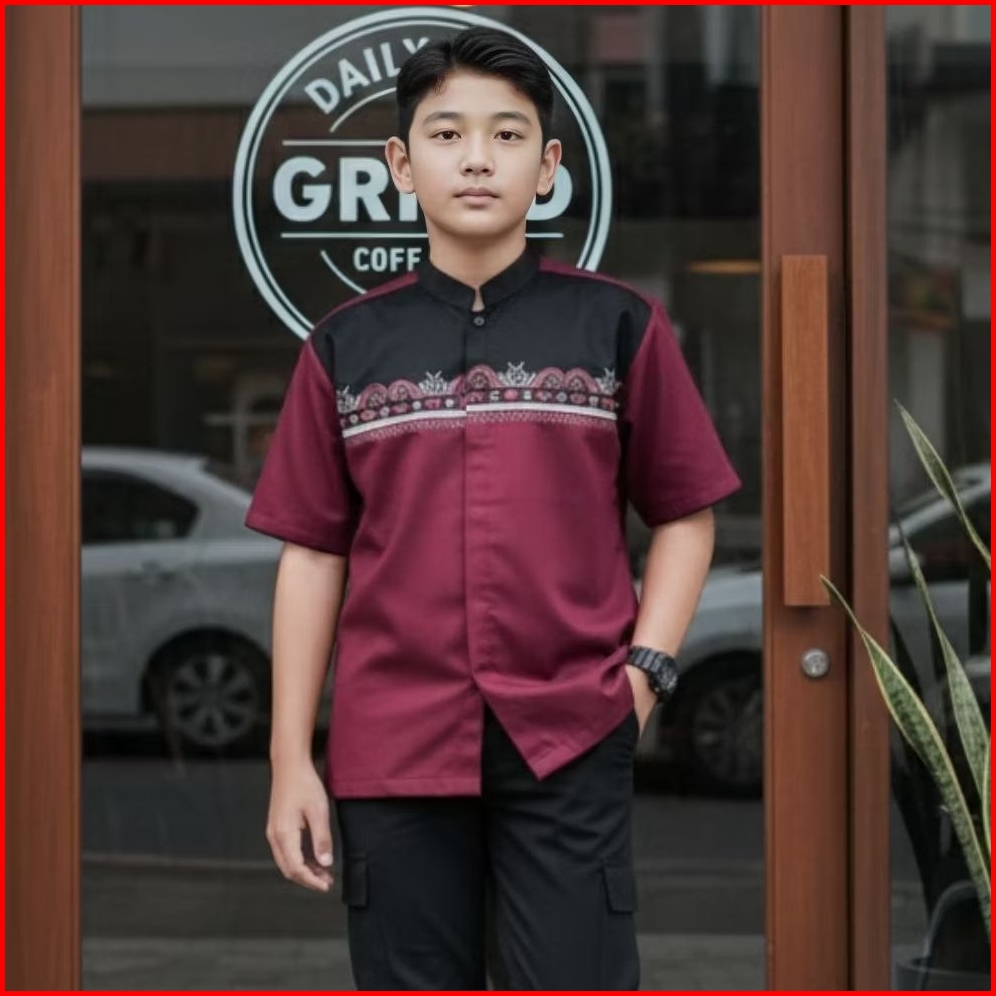 Kemeja Koko Anak Laki-laki Lengan Pendek Motif Bordir Nyaman Dipakai Pilihan Ukuran 815 Tahun