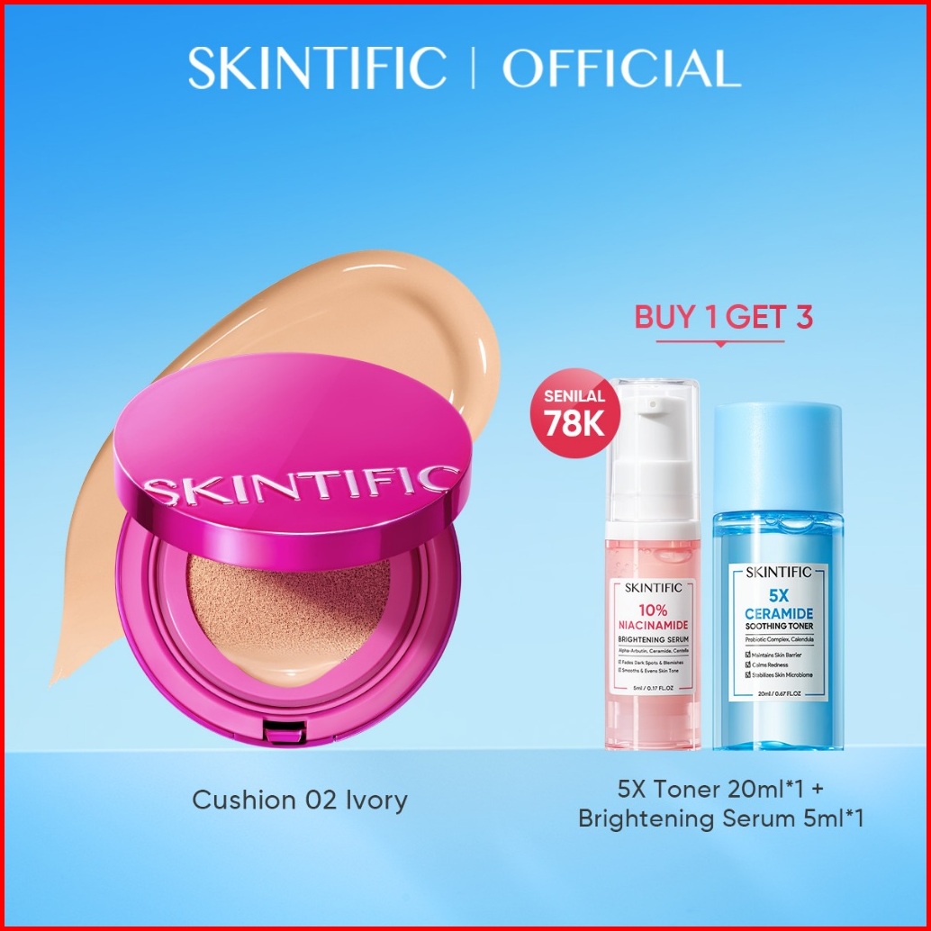 New Launch Skintific - Cover Glow Perfect Pink Cushion Full Coverage Radiance Glow Antioxidation Flawless Long-lasting B