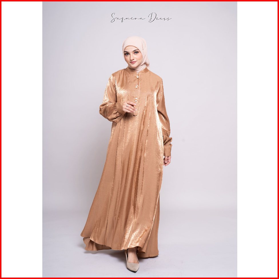 Shalu Nisabila - Saquina Dress Gamis Shimmer Silk Premium Terbaru Baju Muslim Wanita Elegan