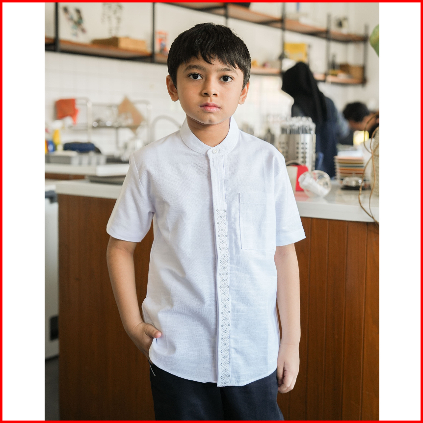 Loa Studios - Baju Kemeja Koko Bordir Anak Lengan Pendek Putih - Asra Kids