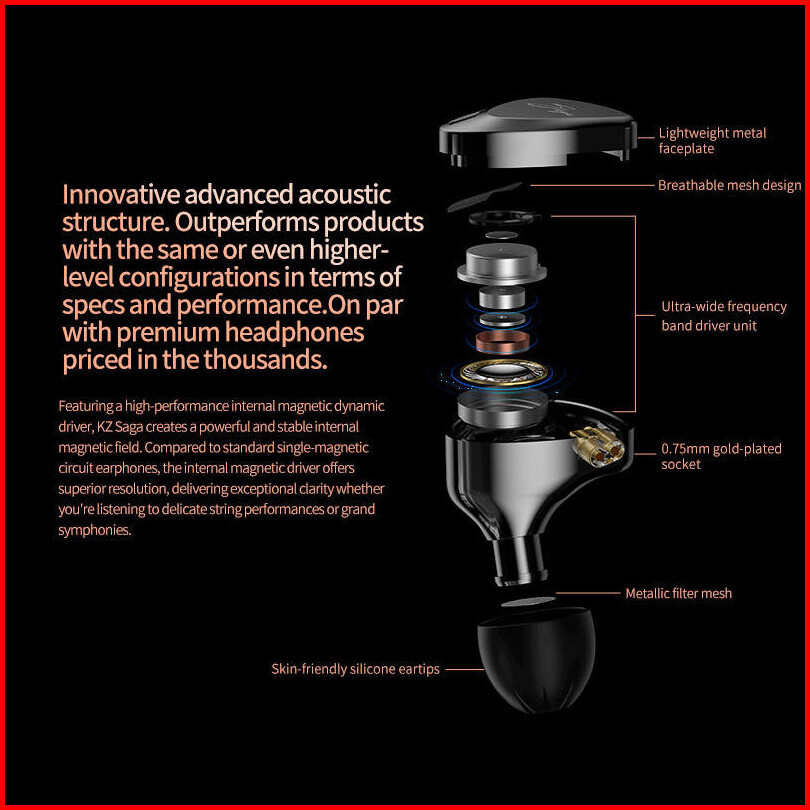 Kz Saga High Performance Magnetic 1dynamic Driver In Ear Monitor Earphone
