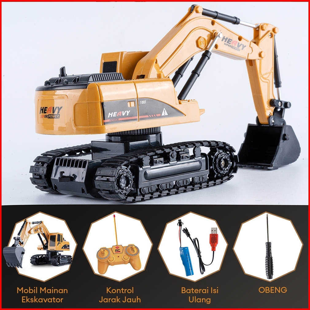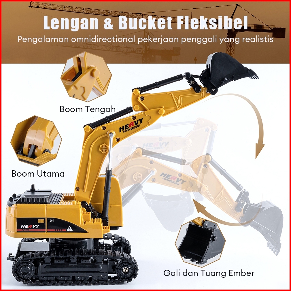 Kidditoy 6 Saluran Excavator Remote Control Bucket Alloy Ekskavator Digger Mainan Beko Anak