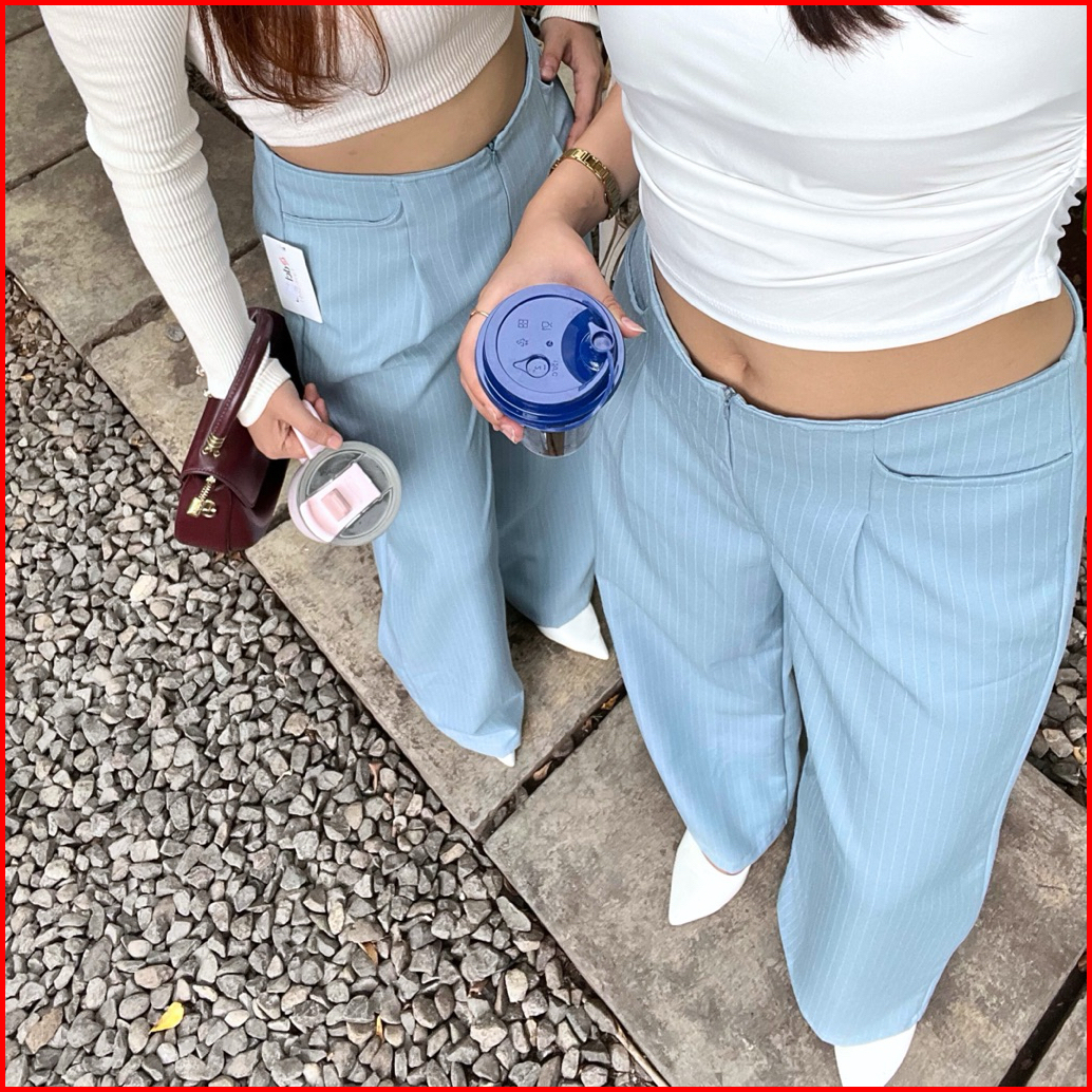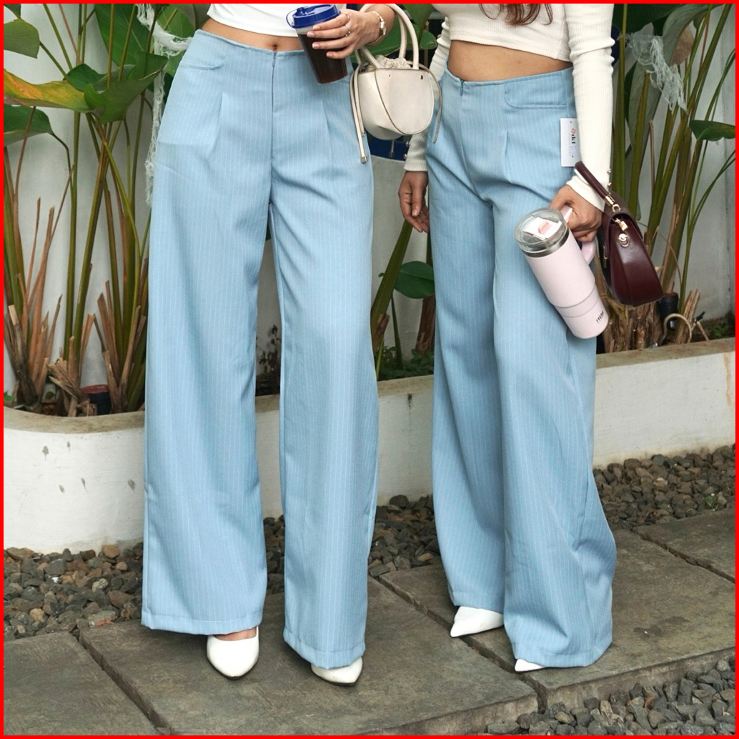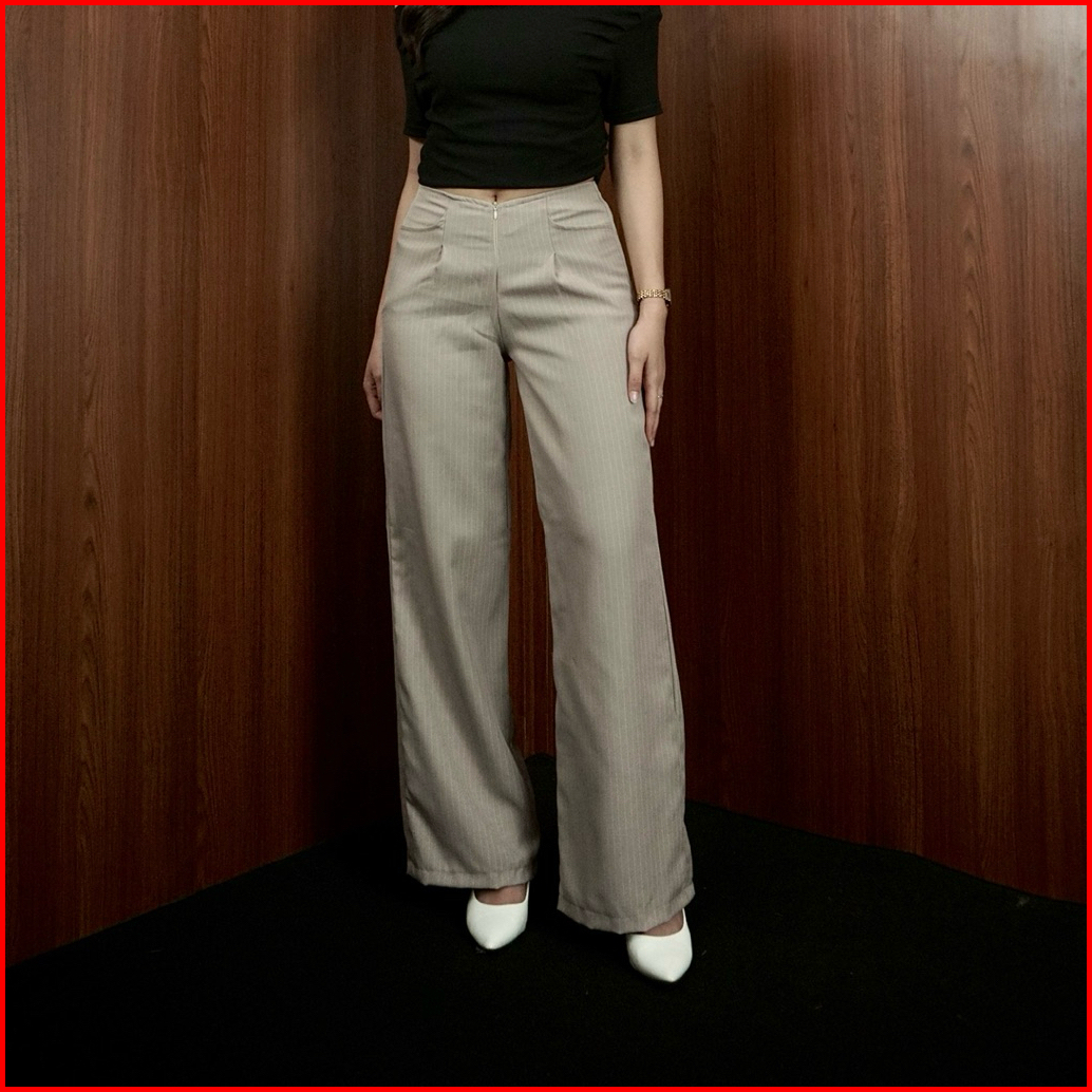 Ef City Pants Celana Casual Tipis Panjang Wanita Kantor Kuliah Motif Garis Kulot Pinstripe Karet Lembut Loose