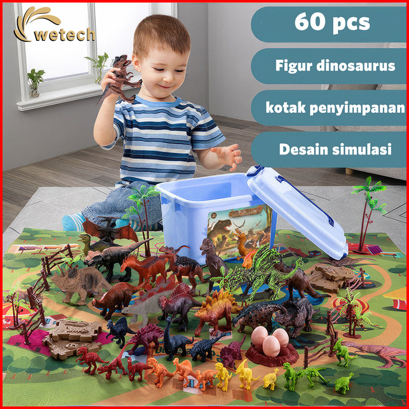 Wetech Dino Figure Karet Mainan 60pcs Set Box Figure Dinosaurus Hewan Animal Mainan Anak Edukatif